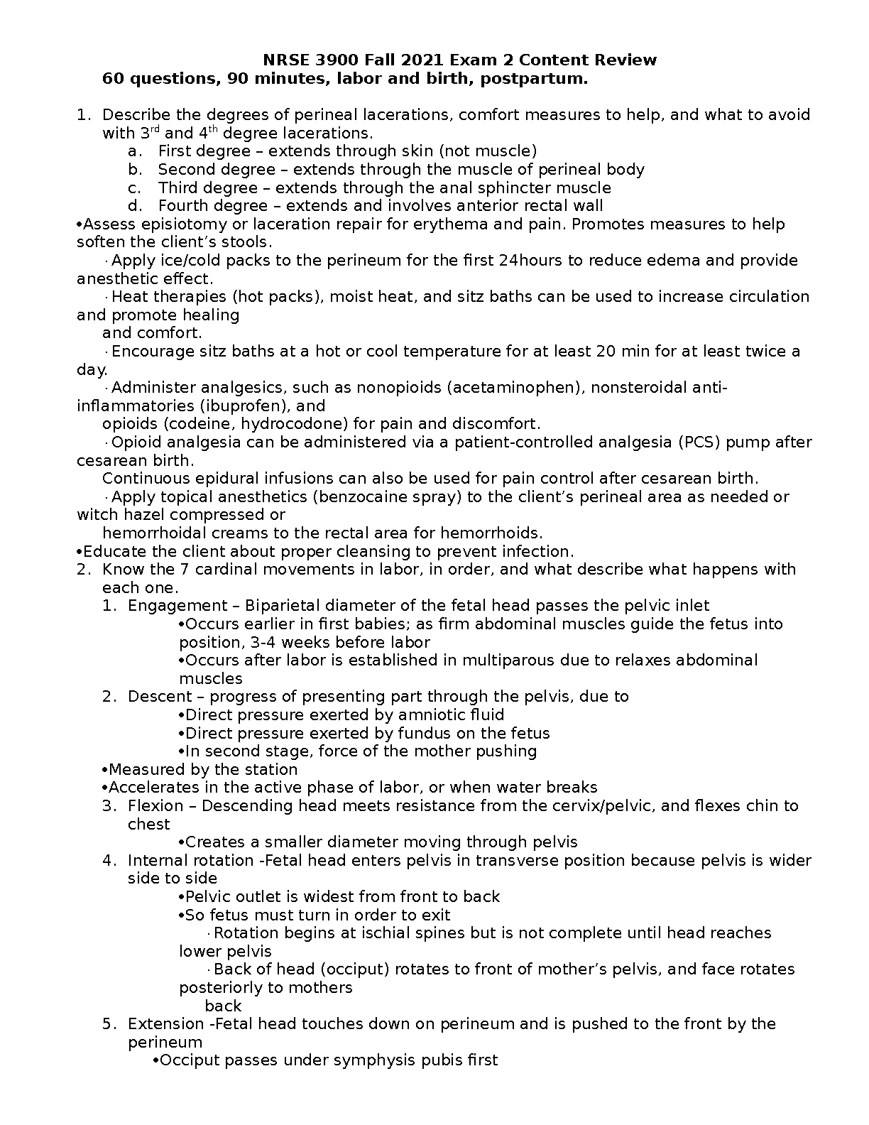 Excel in your NRSE 3900 course with our latest 2025/2026 study guide, specifically tailored for Exam 2. This comprehensive resource is your key to mastering complex topics like labor, birth, and postpartum care. Dive deep into detailed explanations of perineal lacerations, essential comfort measures, and the seven cardinal movements of labor. Designed to help you avoid resits, this guide simplifies critical information, making it easy to study and retain. Prepare with confidence and achieve success on your first attempt with this indispensable nursing exam resource.
