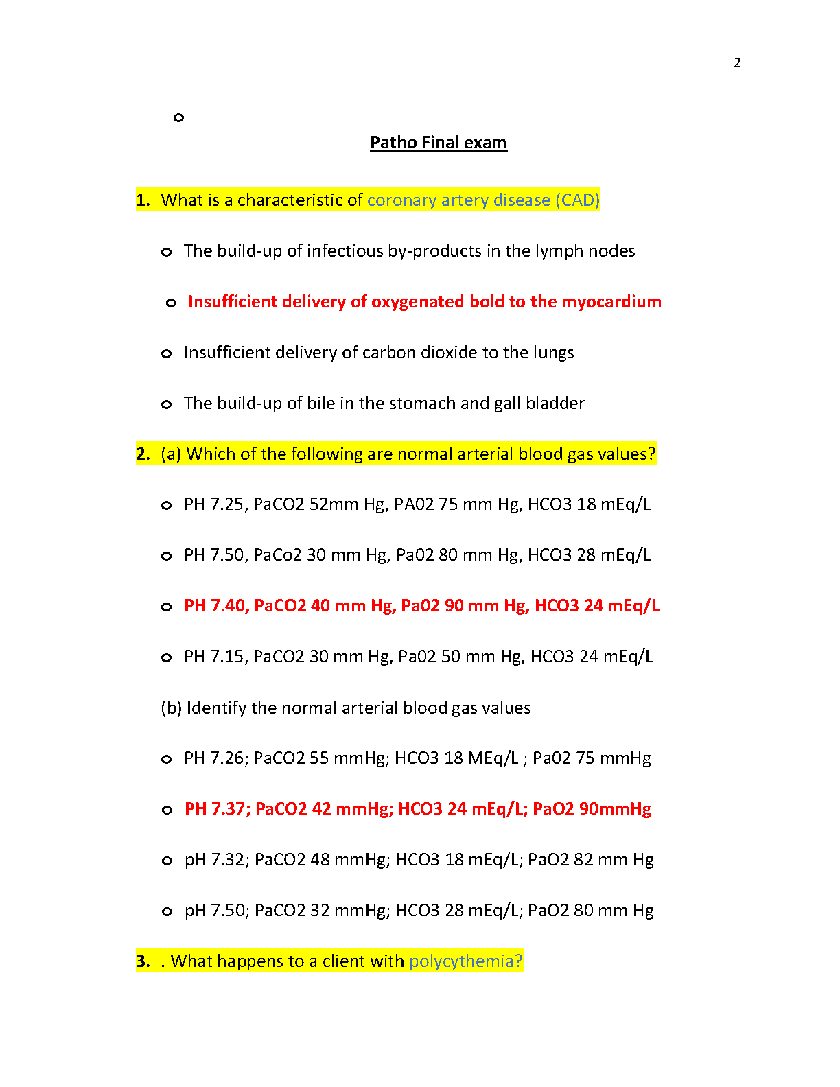 Prepare to ace your pathophysiology final with this updated 2025/2026 test bank. This comprehensive resource provides a curated collection of exam-style questions complete with verified answers, covering essential topics such as Coronary Artery Disease (CAD), normal arterial blood gas (ABG) values, and polycythemia. Ideal for nursing and medical students, this study guide is designed to deepen your understanding, boost your confidence, and help you pass your exam on the first attempt, avoiding costly resits.