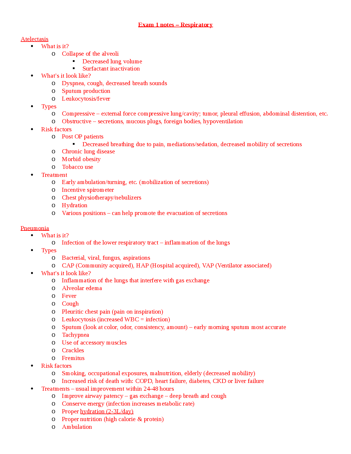 Latest 2025/2026 Nursing Exam 1 Notes: In-Depth Respiratory System Guide on Atelectasis & Pneumonia for First-Attempt Success