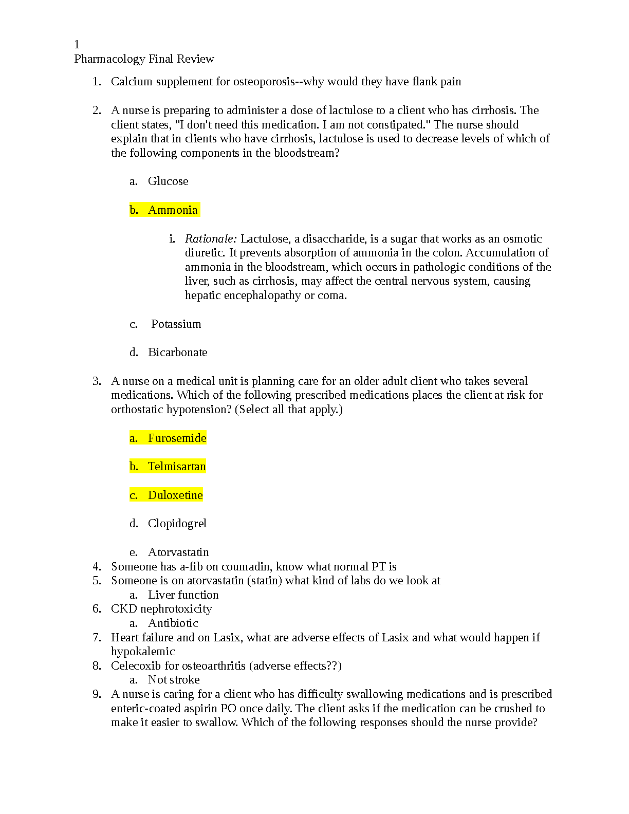Pharmacology Final Exam Review Test Bank: Verified Questions and Answers with In-Depth Rationales for Nursing Students