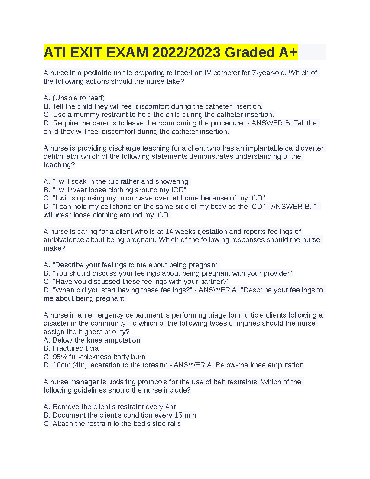 ATI Exit Exam 2022/2023 Test Bank | Comprehensive Nursing Q&A with Verified Answers