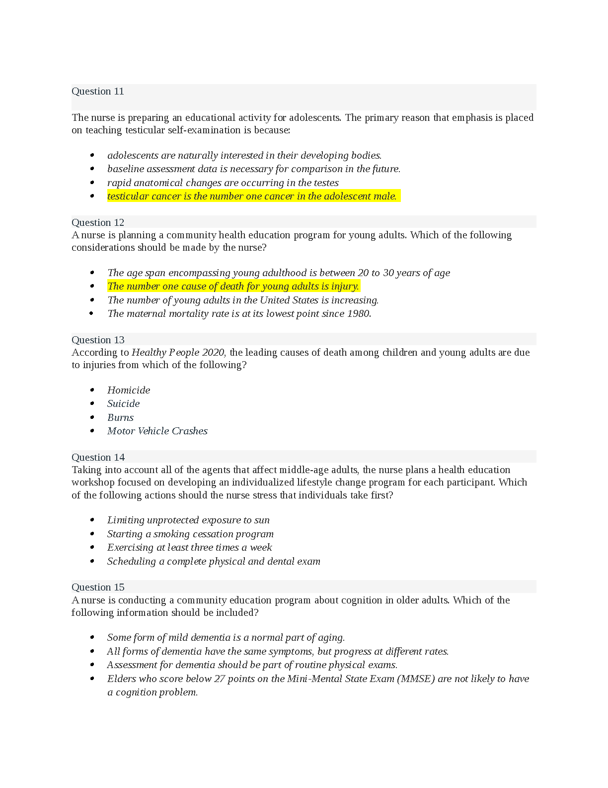 NR 222 Health & Wellness Exam 2 Test Bank - Edelman, Kudzma & Mandle, 10th Edition | Authentic Questions & Answers