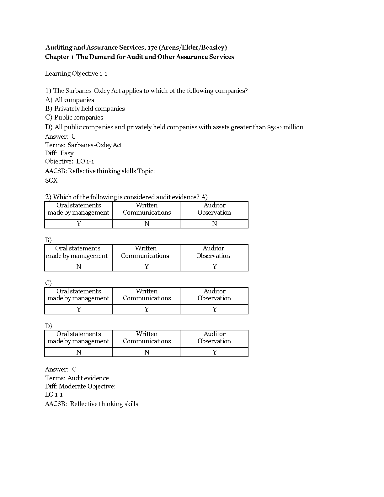 Test Bank for Auditing and Assurance Services: An Integrated Approach, 17th Edition by Alvin A. Arens, Randal J. Elder, Mark S. Beasley, and Chris E. Hogan