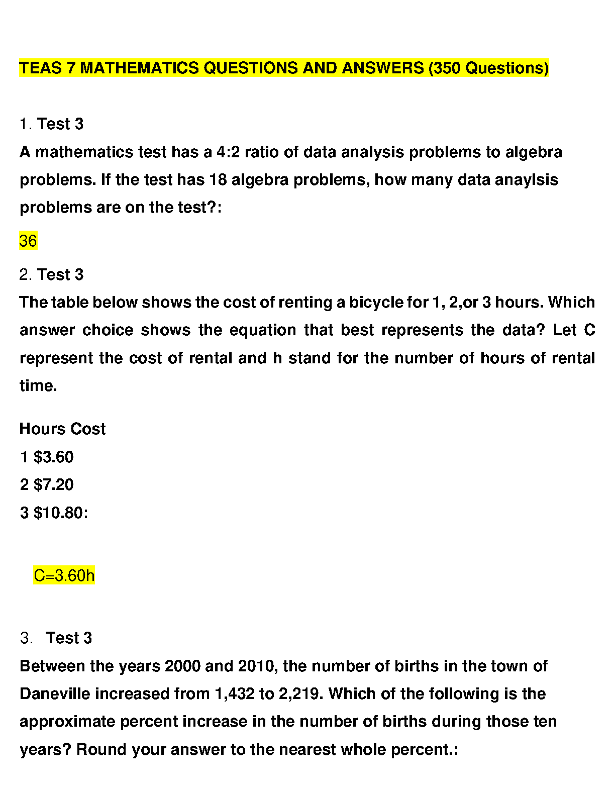 Ace the Mathematics section of your ATI TEAS 7 exam on the first try! This comprehensive test bank provides 350 practice questions complete with detailed, verified answers. Master topics like algebra, data analysis, and more. This is the ultimate study resource designed to help you succeed and avoid resits.