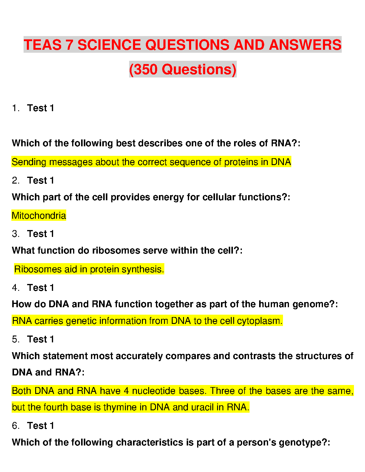 Prepare to excel on the ATI TEAS 7 Science section with our exhaustive test bank. This essential study resource provides 350 practice questions, each with a verified and highlighted answer to ensure you master the material. Dive deep into key scientific concepts, including biology, cellular functions, genetics (DNA/RNA), and more. Designed specifically for aspiring nursing students, this guide is your key to passing the TEAS 7 exam with confidence on your first attempt and securing your spot in nursing school.