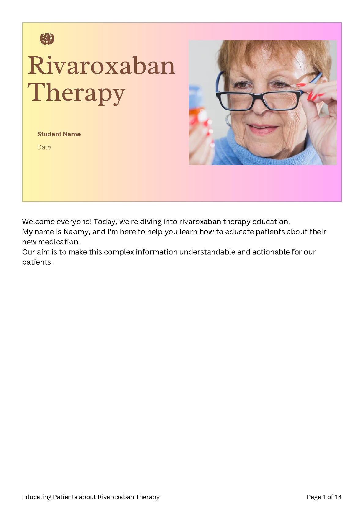 Get exam-ready for the 2025/2026 academic year with our in-depth study guide on Rivaroxaban Therapy. This 14-page resource is specifically designed for nursing, medical, and pharmacology students. It breaks down the complexities of patient education for Rivaroxaban, providing clear, actionable information. Master key concepts, understand indications, side effects, and patient counseling points to excel in your coursework and clinicals. This guide is your key to acing your exams on the first try and avoiding resits.