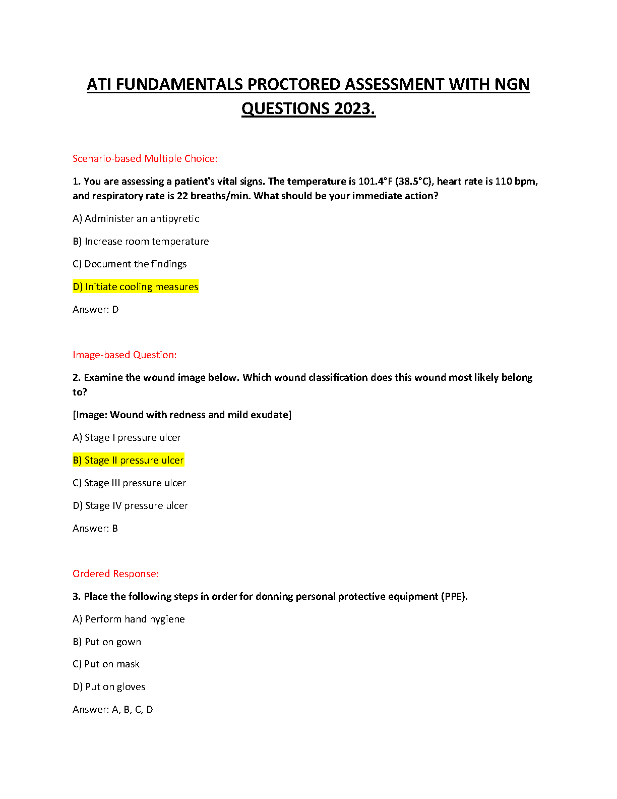 ATI Fundamentals Proctored Exam 2023: NGN Test Bank with 100% Correct Questions and Detailed Answers