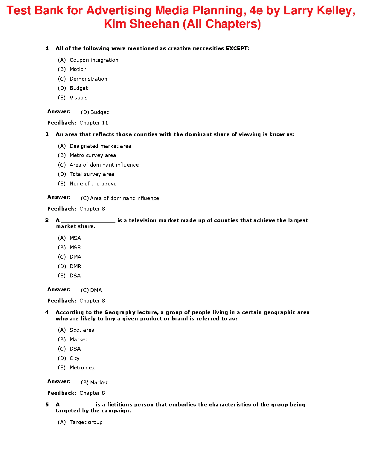 Test Bank For Advertising Media Planning, 4th Edition By Larry Kelley, Kim Sheehan