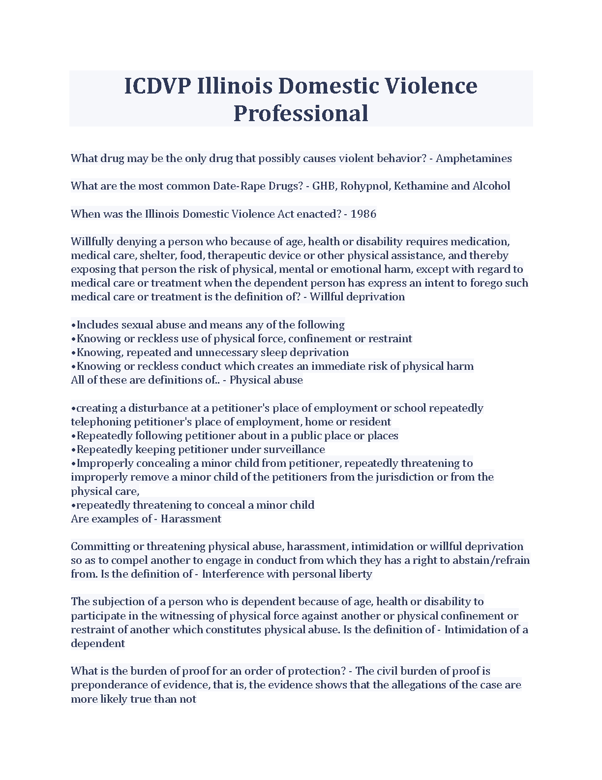 Master the ICDVP Exam: Illinois Domestic Violence Professional Test Bank | Complete Q&A for 2025/2026 Certification Success