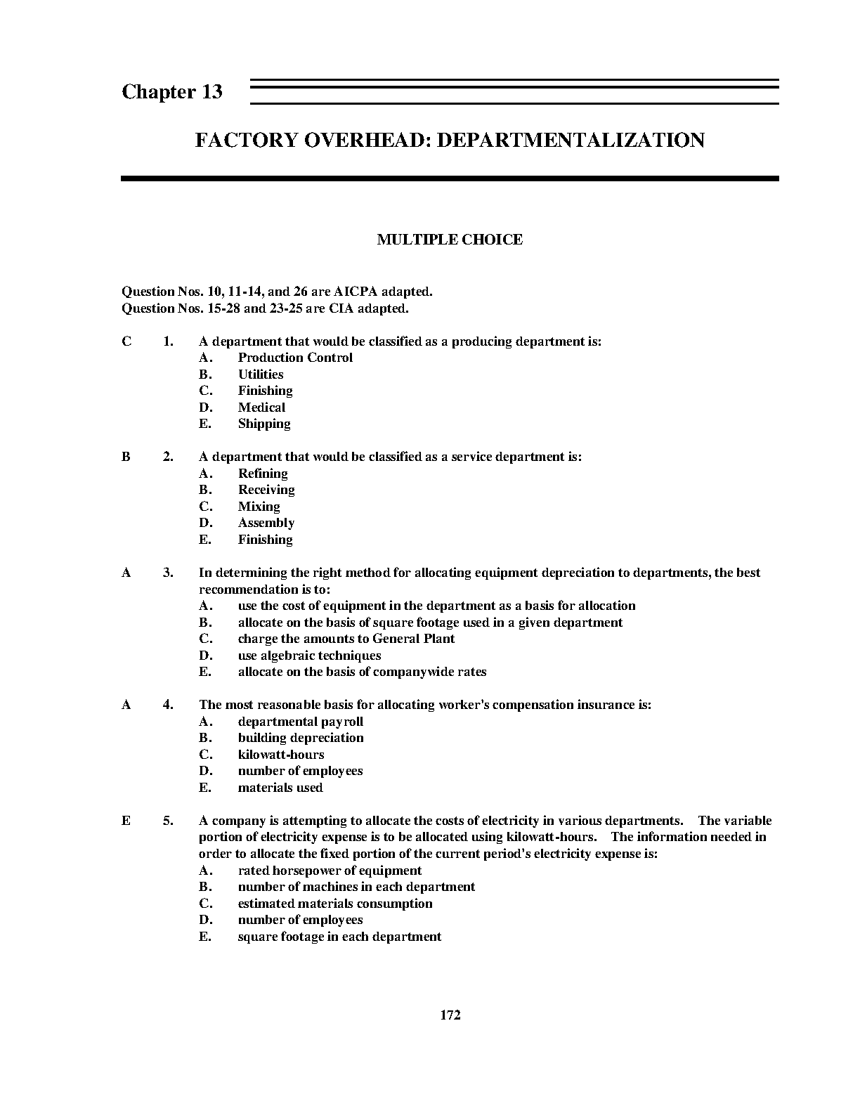 Unlock your potential with the official Test Bank for Chapter 13, 'Factory Overhead: Departmentalization,' from the 2024 Edition of 'Cost Accounting: Principles and Procedures' by Guerrero and Peralta. This essential study guide provides a comprehensive collection of multiple-choice questions, complete with verified answers, designed to sharpen your understanding of cost allocation, service vs. producing departments, and overhead management. Perfect for students preparing for exams, this resource helps you master complex concepts and practice with exam-style questions to ensure you pass with confidence.