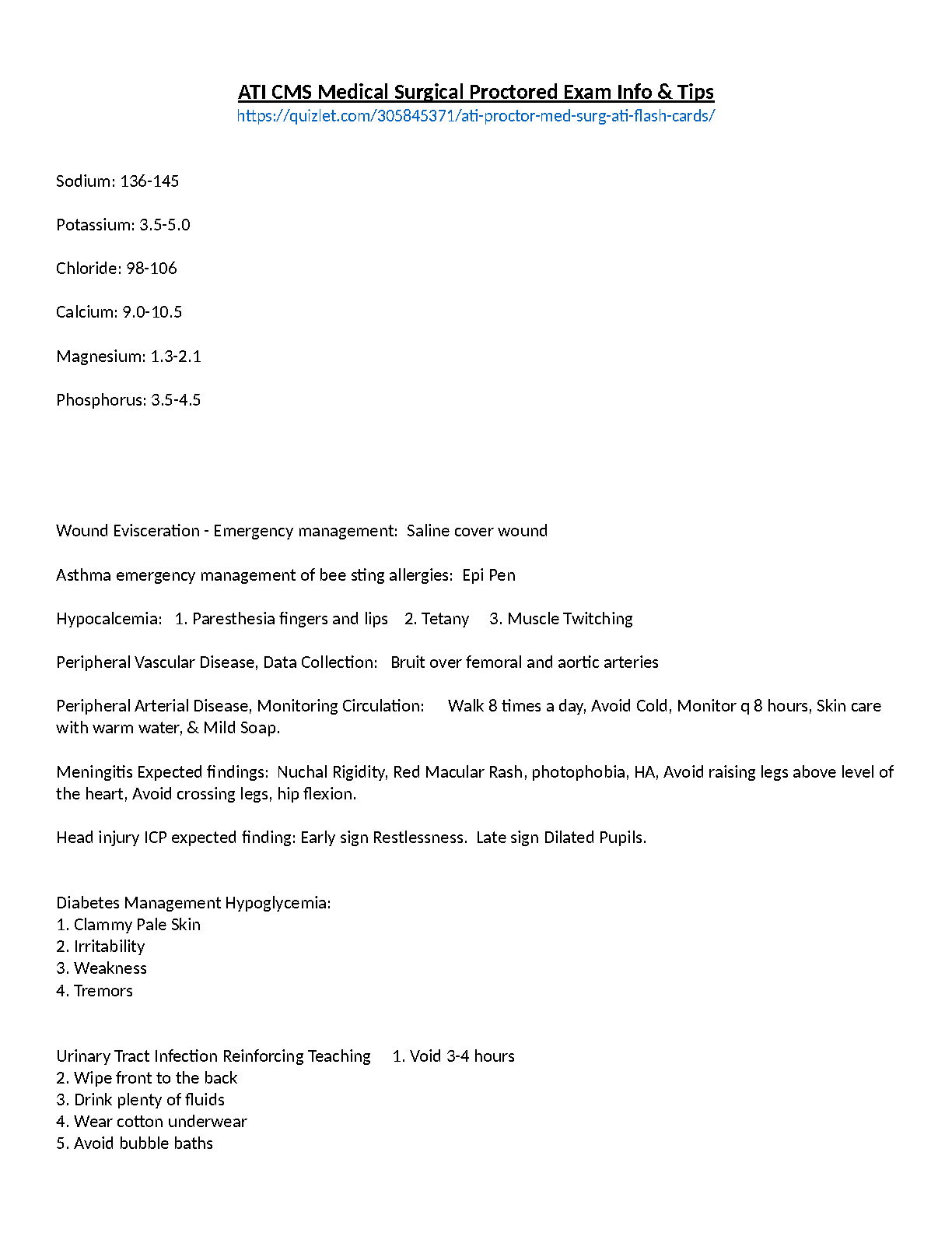 Ace your ATI CMS Medical-Surgical Proctored Exam with this essential study guide, fully updated for the 2025/2026 academic year. This resource is expertly designed to help you pass confidently on your first try, avoiding costly and stressful resits. It covers high-yield topics including critical lab values, emergency management protocols, key signs and symptoms for various conditions like meningitis and hypocalcemia, and vital patient teaching points. Streamline your revision process with these crucial tips and secure your success.