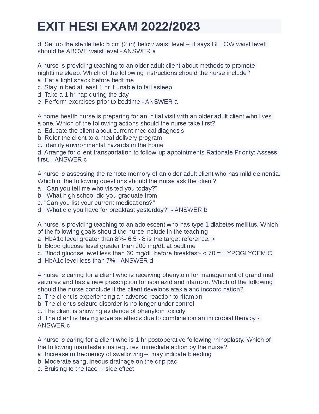 HESI Exit Exam RN 2022/2023 Test Bank: Verified Questions and Answers for 2025/2026 First-Attempt Success
