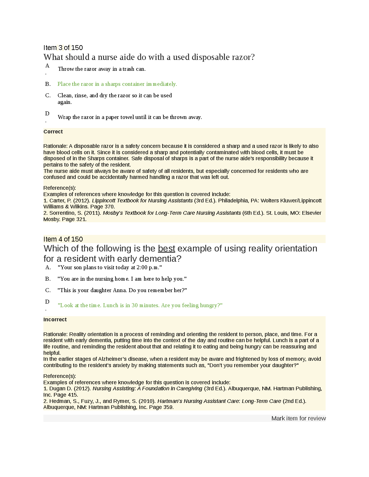 Test Bank for Mosby's Textbook for Long-Term Care Nursing Assistants, 6th Edition by Sheila A. Sorrentino | 150 Exam Questions with Detailed Rationales