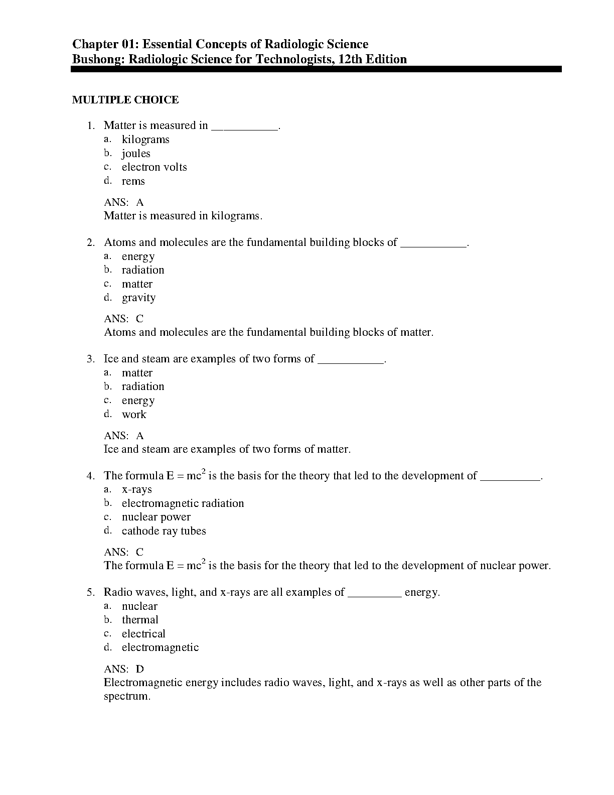 Test Bank for Radiologic Science for Technologists: Physics, Biology, and Protection, 12th Edition by Stewart C. Bushong