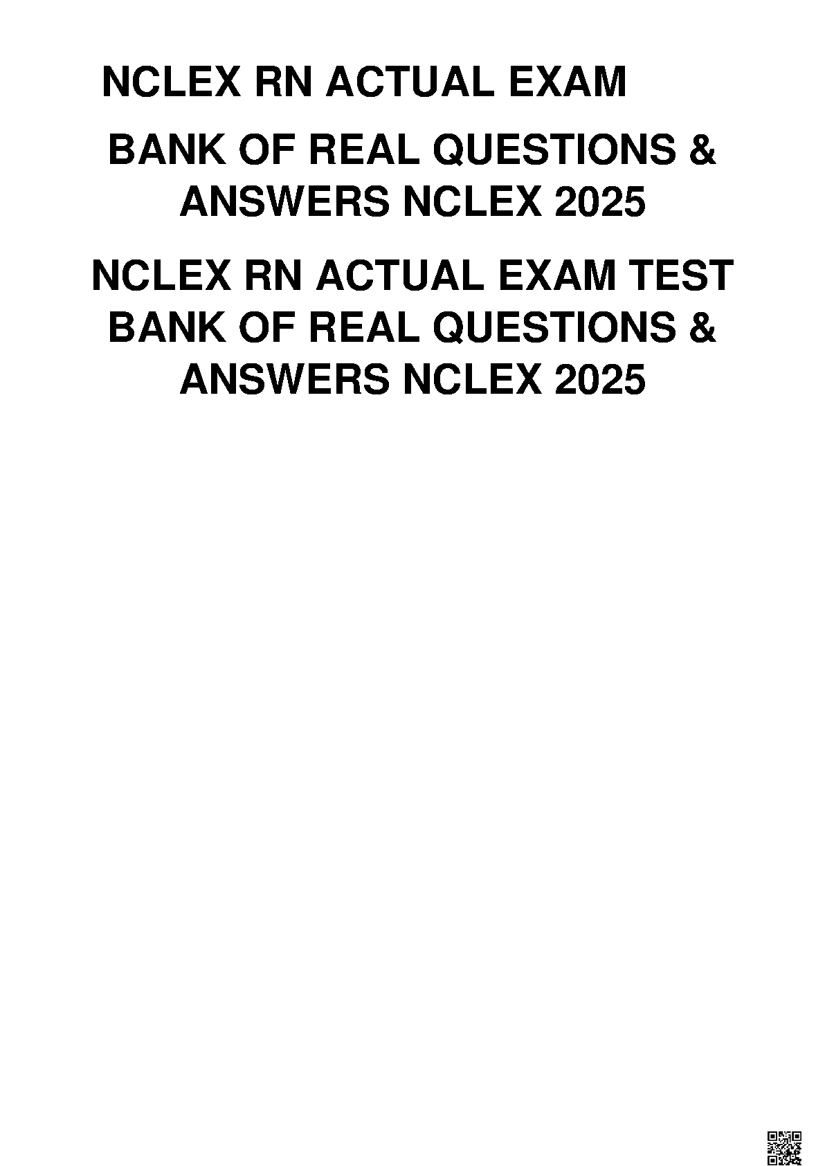 NCLEX RN 2025 Actual Exam Test Bank with Real Questions & Comprehensive Answers