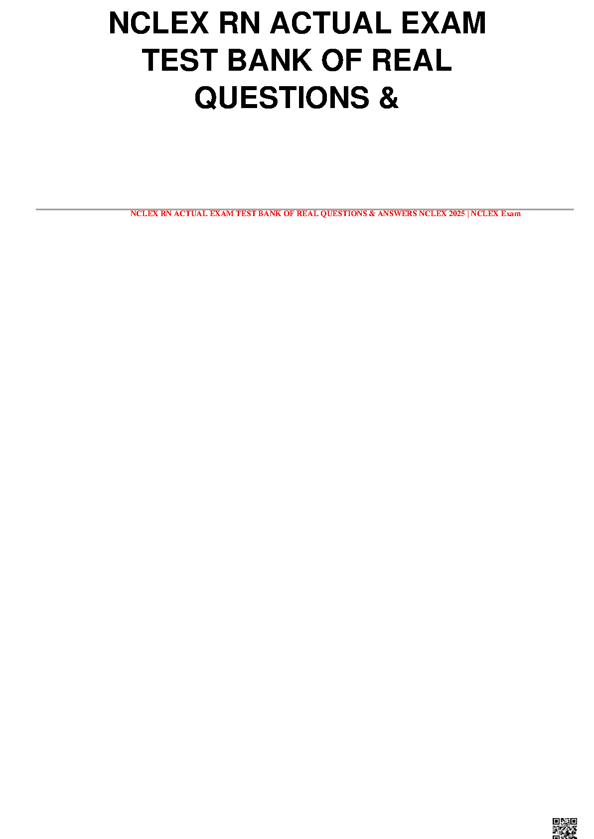 Prepare to excel on your nursing licensure exam with our NCLEX RN 2025 Actual Exam Test Bank. This essential study resource is packed with real questions and verified, detailed answers directly reflecting the content and format of the 2025 NCLEX-RN. Master key nursing concepts, practice with authentic exam-style questions, and build the confidence you need to pass on your very first attempt. Avoid the stress and expense of resits by using this comprehensive and up-to-date guide for your success.