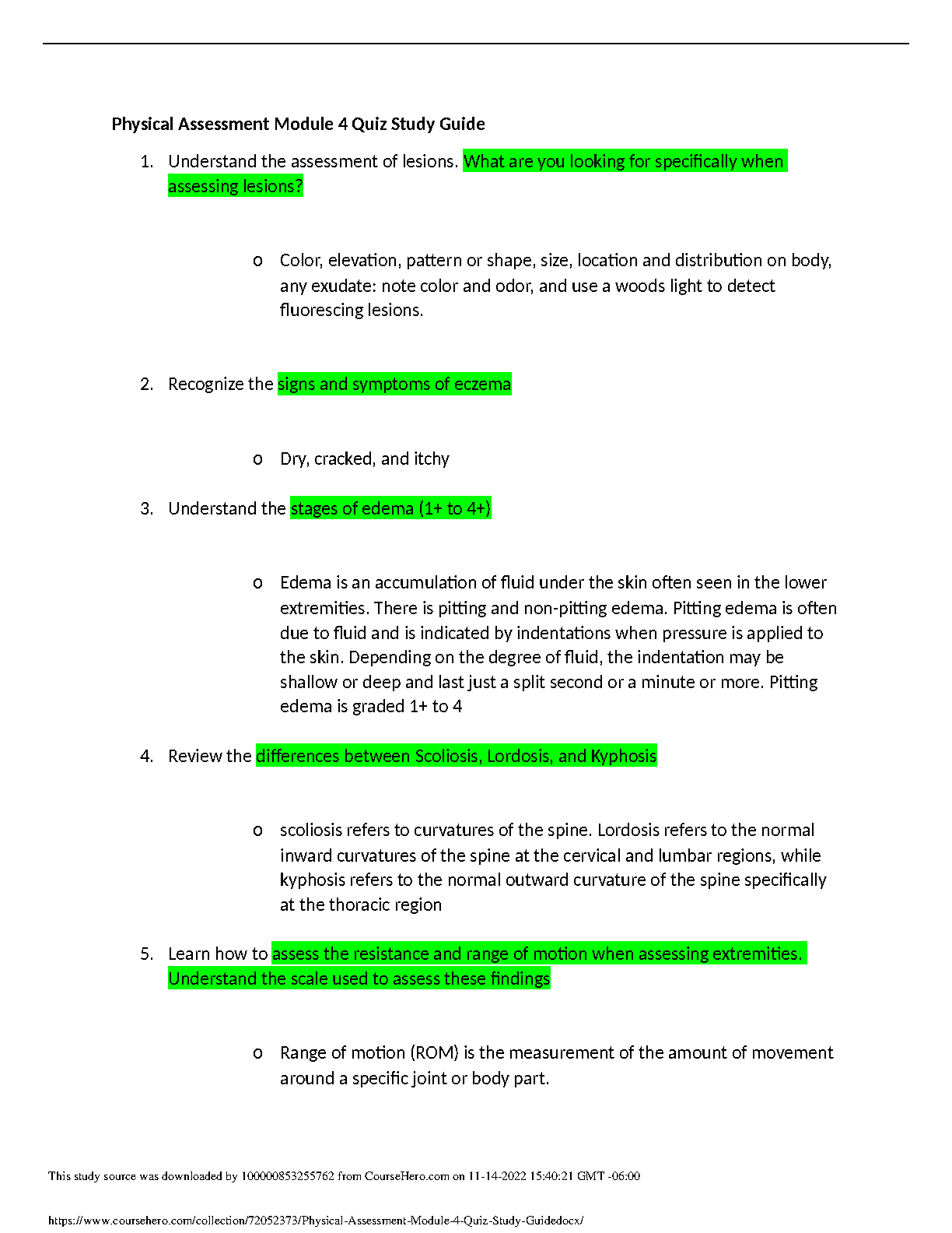 Master the key concepts for your Physical Assessment Module 4 quiz with this ultimate 2025/2026 study guide. This resource provides detailed explanations and essential knowledge to help you pass on your first attempt. It covers critical topics including the comprehensive assessment of skin lesions, recognizing eczema, understanding the stages of edema (1+ to 4+), differentiating between scoliosis, lordosis, and kyphosis, and evaluating range of motion (ROM) and resistance in extremities. Prepare effectively, build your confidence, and excel in your nursing or medical course.
