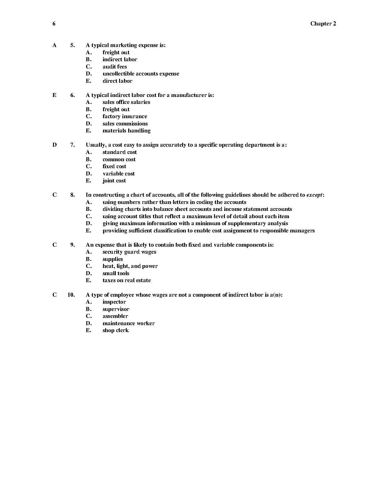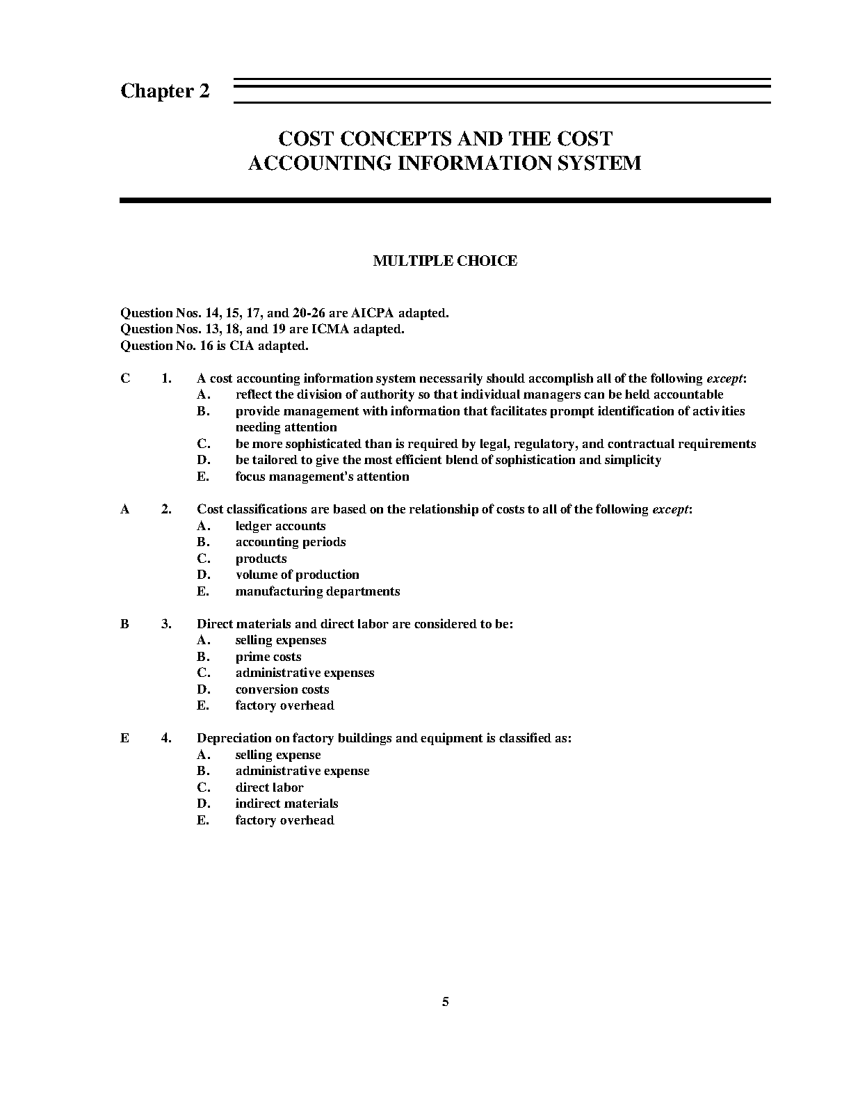 Instantly download the complete test bank for Chapter 2: Cost Concepts and the Cost Accounting Information System, from the acclaimed textbook, Cost Accounting, 14th Edition by William K. Carter. This study guide provides a vast array of multiple-choice questions, each with its correct answer clearly indicated, allowing you to effectively test your knowledge and prepare for exams. Master critical topics like cost classifications, prime costs, conversion costs, and the structure of a cost accounting information system. This is the ultimate resource for students aiming to achieve top grades in their cost accounting course.