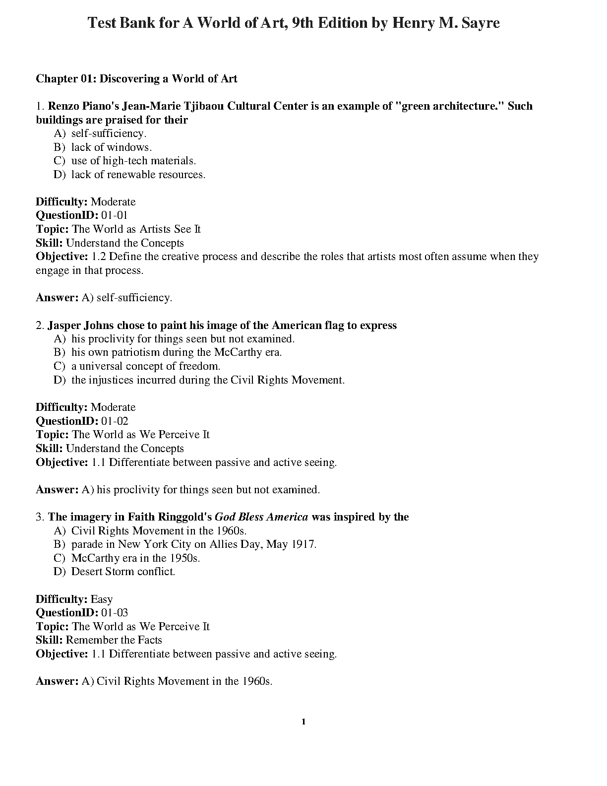 Test Bank for A World of Art, 9th Edition by Henry M. Sayre