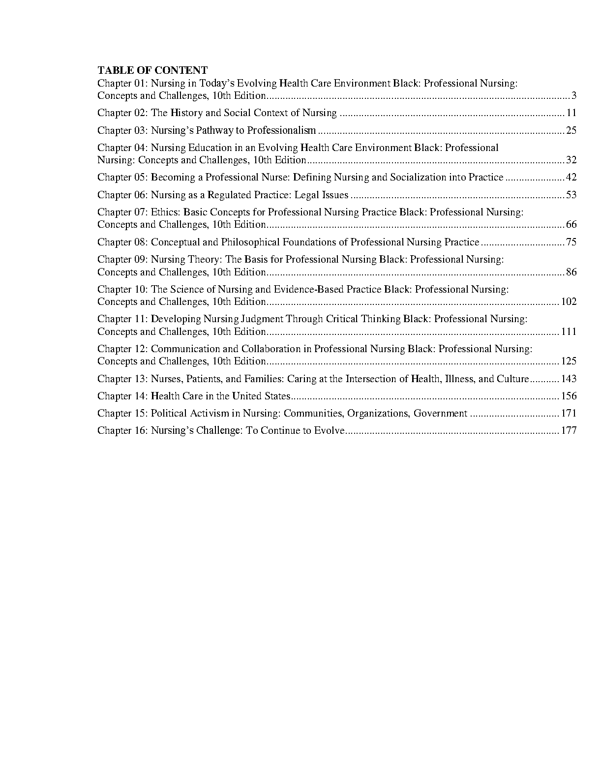 Master your nursing course with the official Test Bank for Professional Nursing: Concepts & Challenges, 10th Edition by Beth Perry Black. This comprehensive resource is packed with hundreds of practice questions and detailed answers covering every chapter, designed to help you ace your exams. Deepen your understanding of key nursing concepts, test your knowledge effectively, and prepare for success in your professional nursing journey.