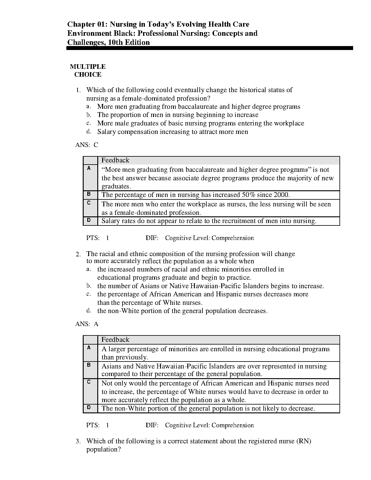 Test Bank for Professional Nursing: Concepts & Challenges, 10th Edition by Beth Perry Black