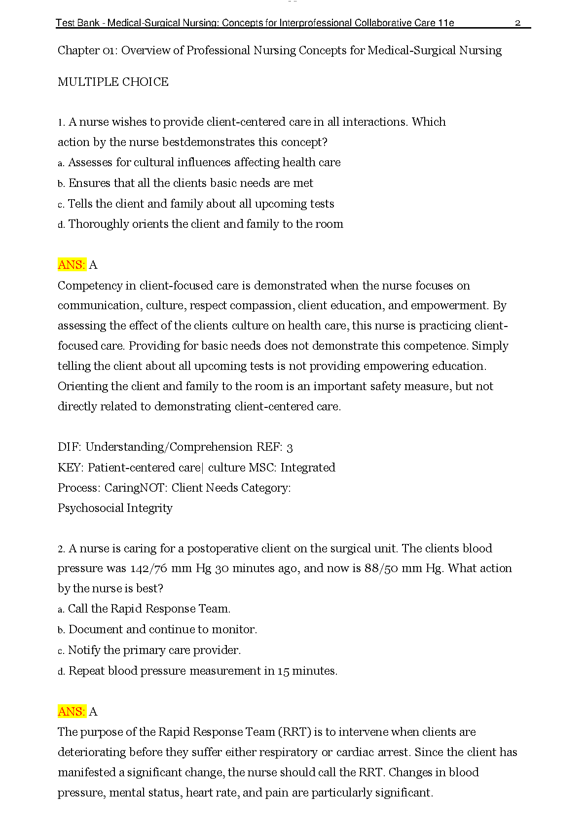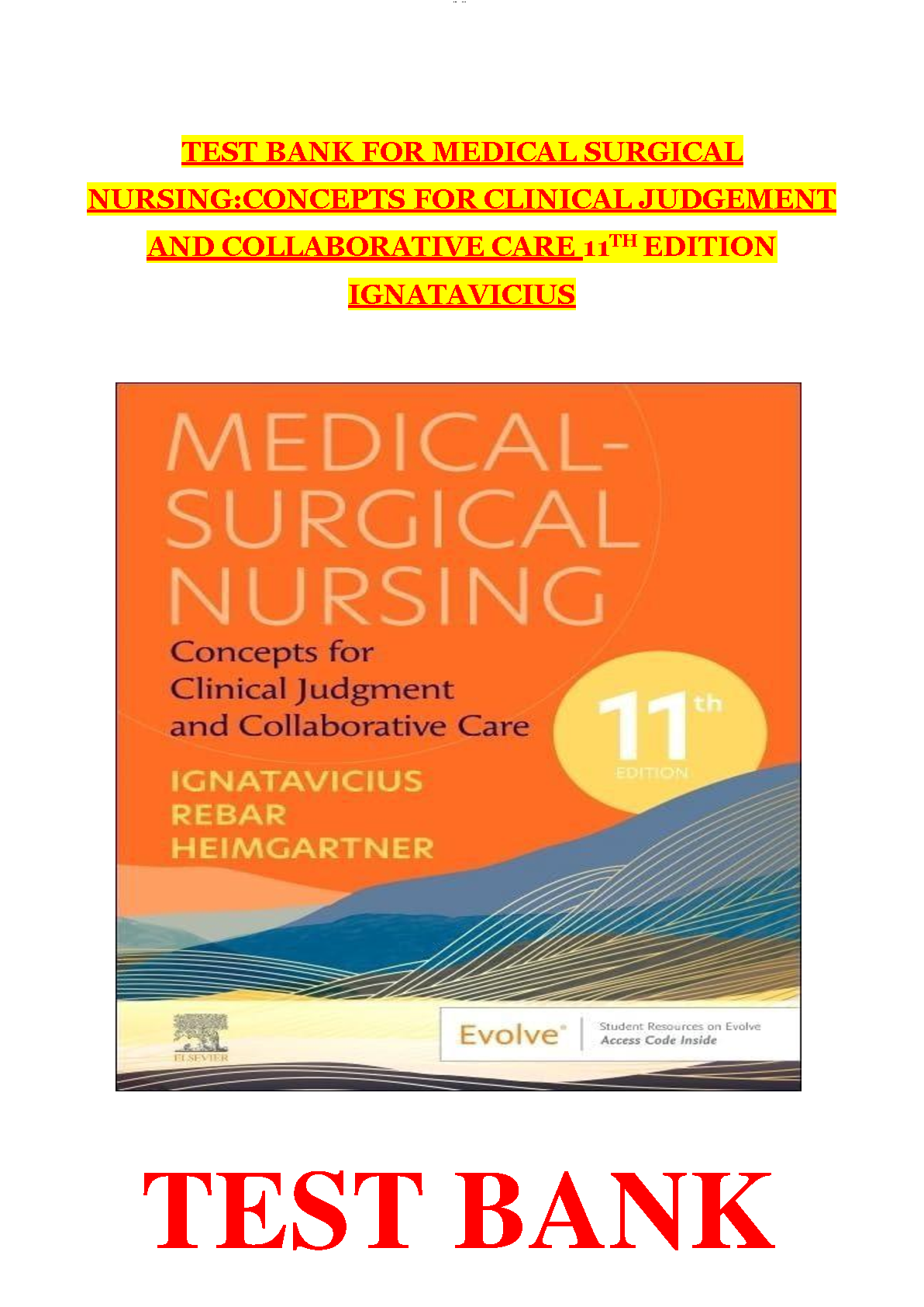 Test Bank for Medical-Surgical Nursing: Concepts for Clinical Judgment and Collaborative Care, 11th Edition by Donna D. Ignatavicius, Cherie R. Rebar, Nicole M. Heimgartner