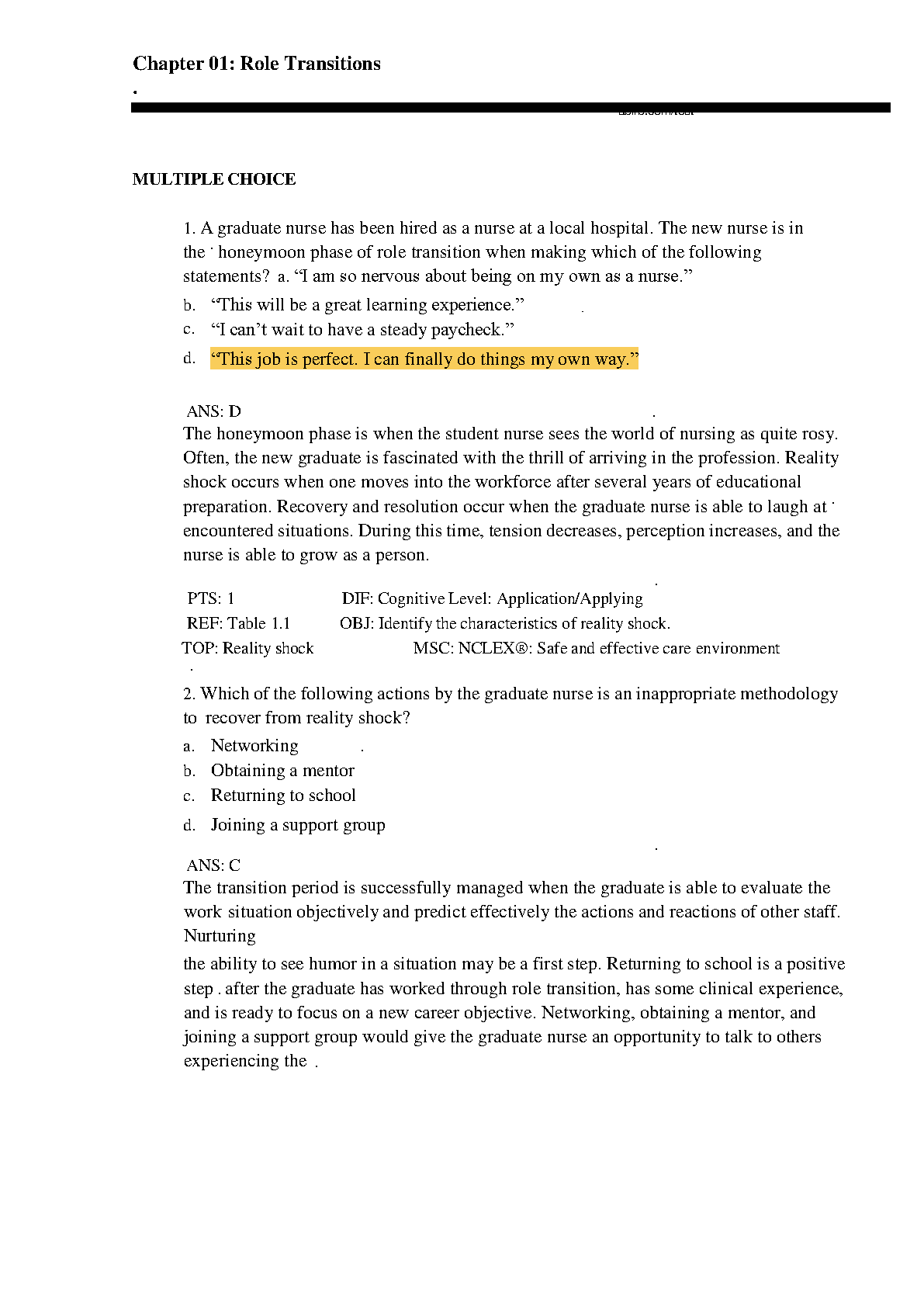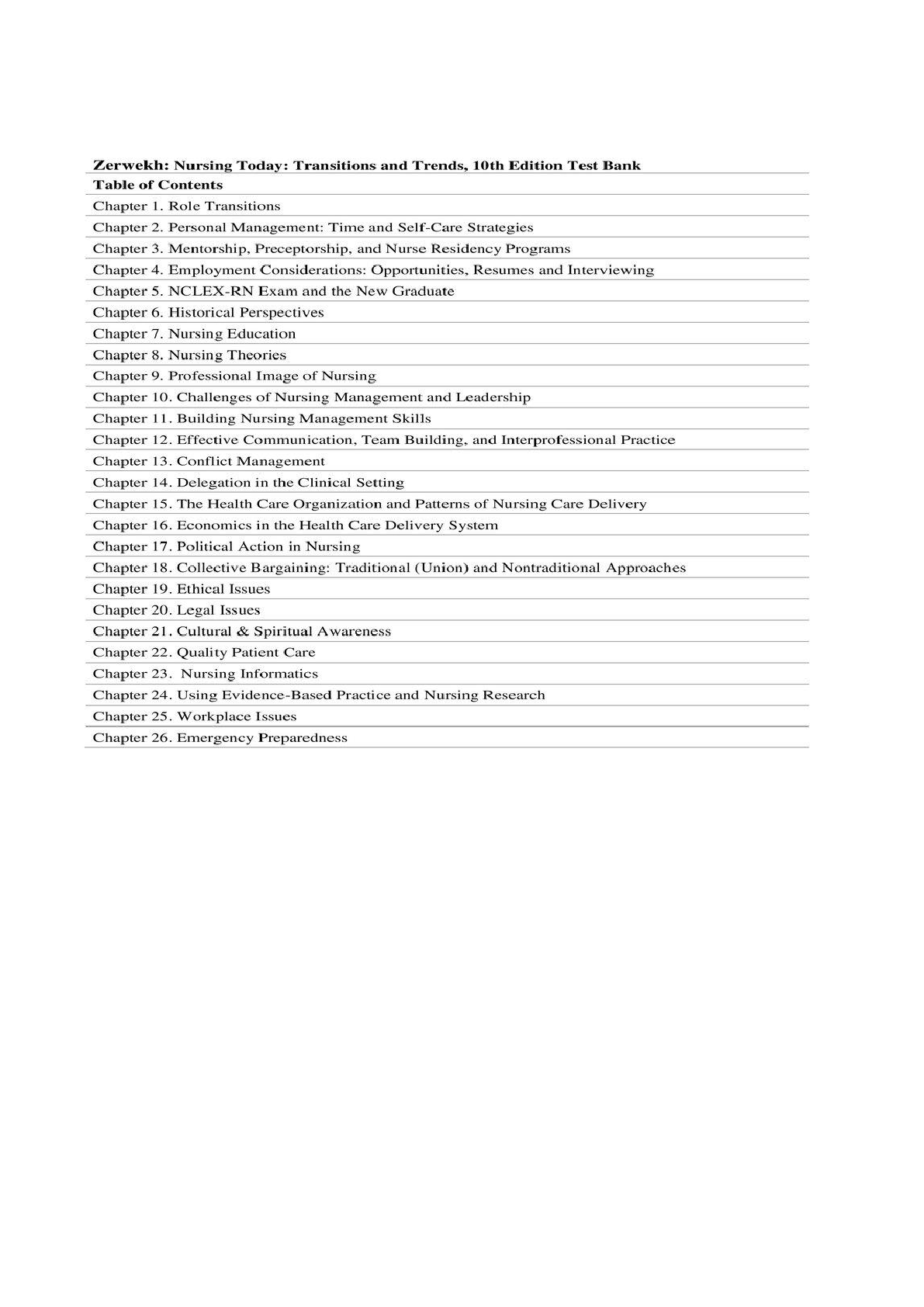 Test Bank for Nursing Today: Transitions and Trends, 10th Edition by JoAnn Zerwekh, Ashley Zerwekh-Gelpke