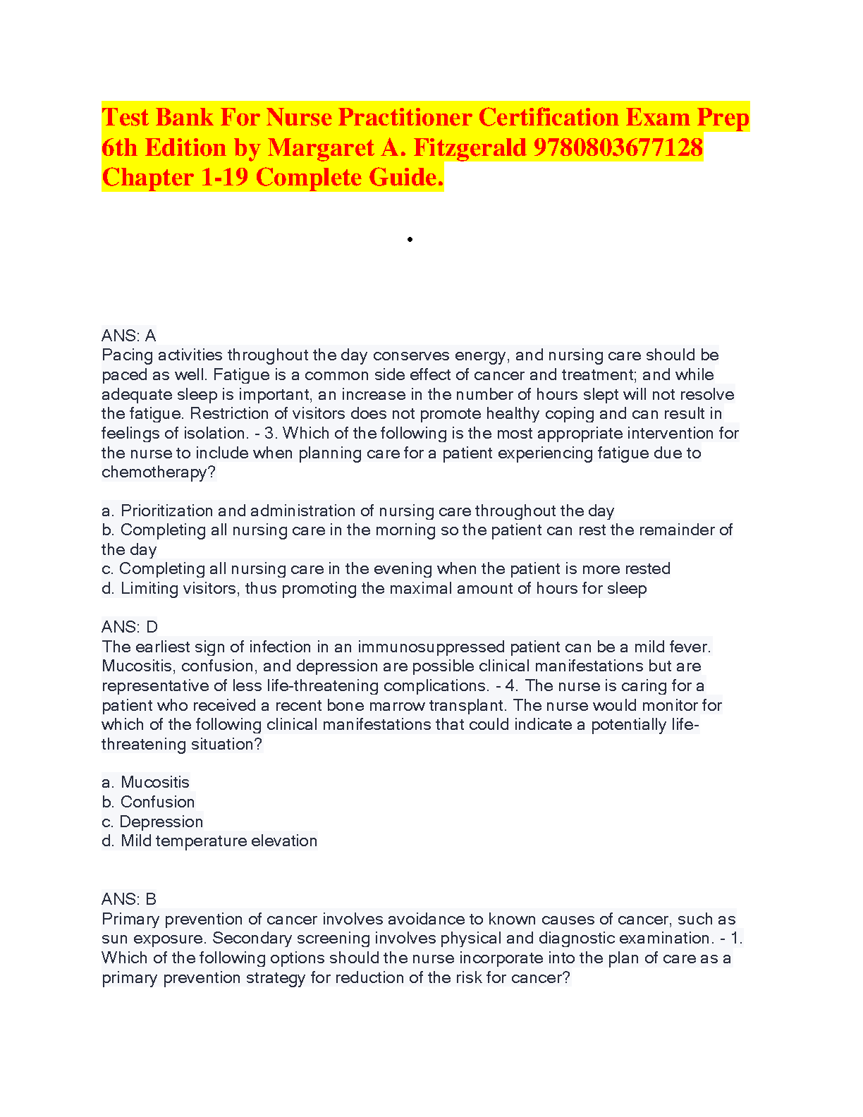 Test Bank for Nurse Practitioner Certification Exam Prep, 6th Edition by Margaret A. Fitzgerald | Complete Chapters 1-19 with Questions and Answers