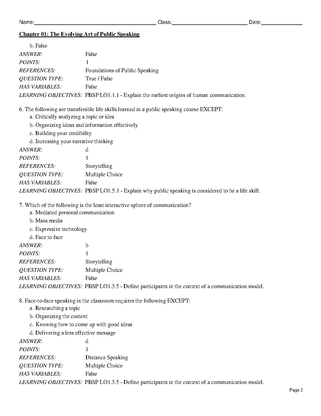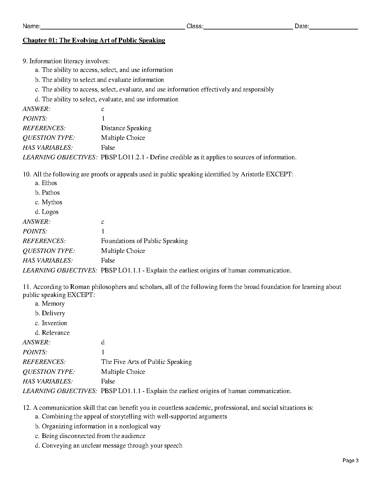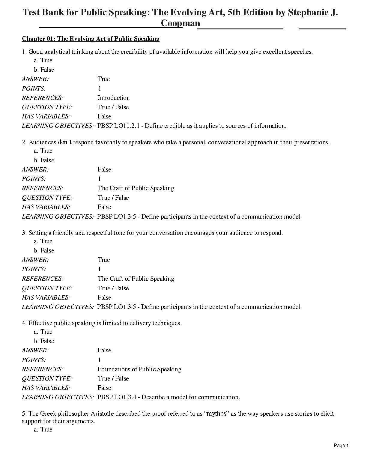 Test Bank for Public Speaking: The Evolving Art, 5th Edition by Stephanie J. Coopman & James Lull