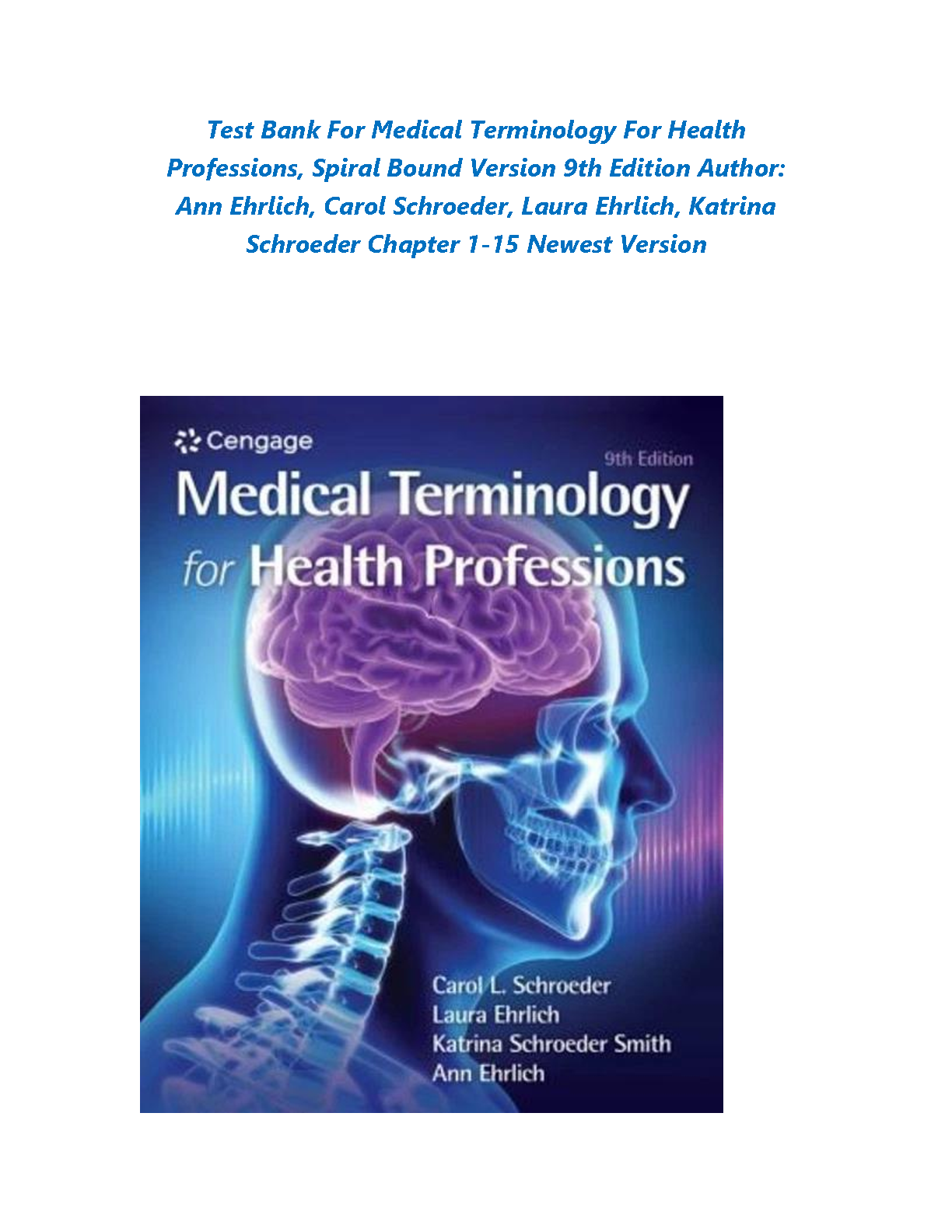 Test Bank for Medical Terminology for Health Professions, 9th Edition by Ann Ehrlich, Carol L. Schroeder, Laura Ehrlich, and Katrina Schroeder Smith