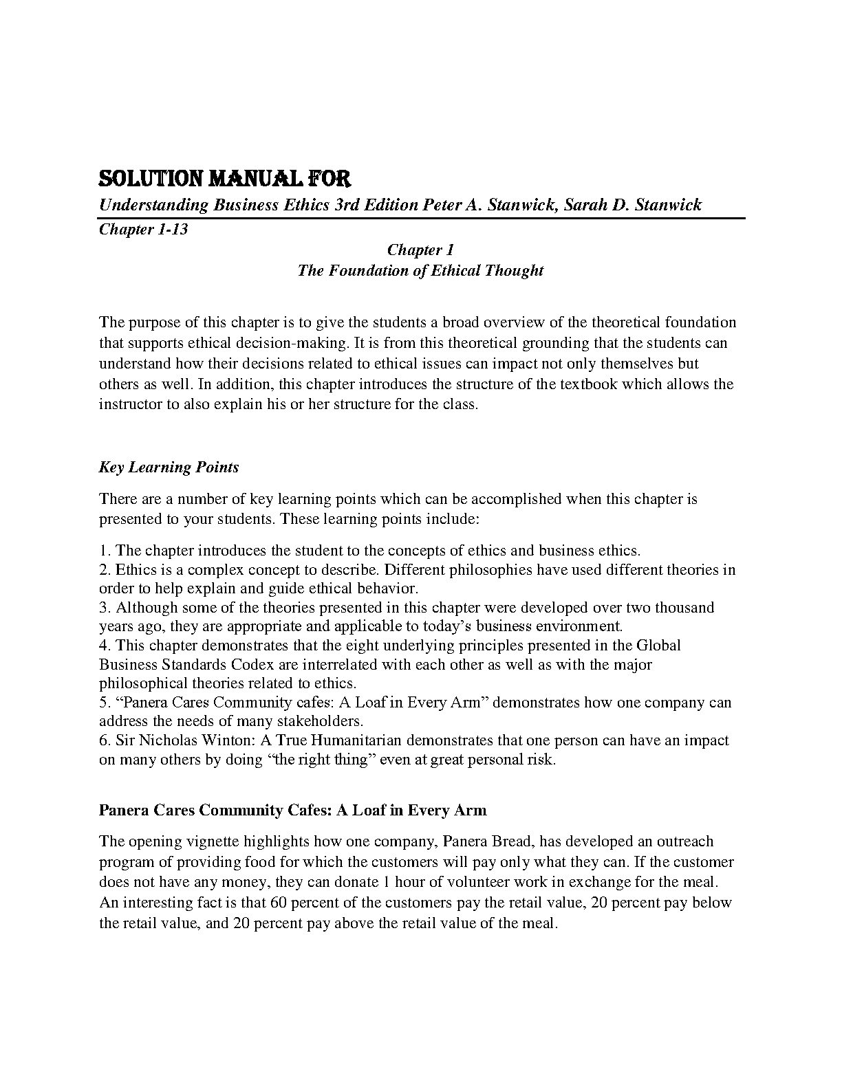 Solution Manual for Understanding Business Ethics, 3rd Edition by Peter A. Stanwick & Sarah D. Stanwick