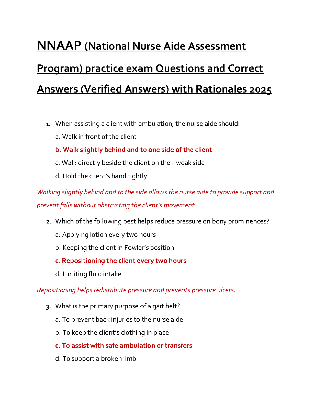 NNAAP (National Nurse Aide Assessment Program) Test Bank 2025: Practice Exam Questions and Verified Answers with Detailed Rationales