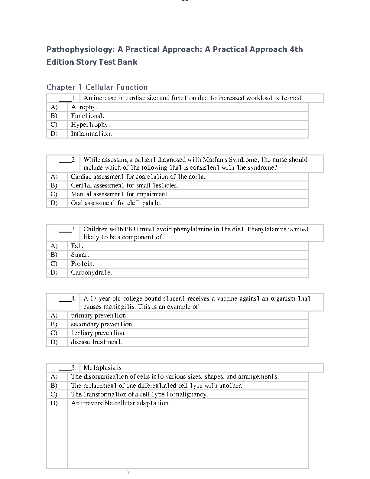 Test Bank for Pathophysiology: A Practical Approach, 4th Edition by Lachel Story