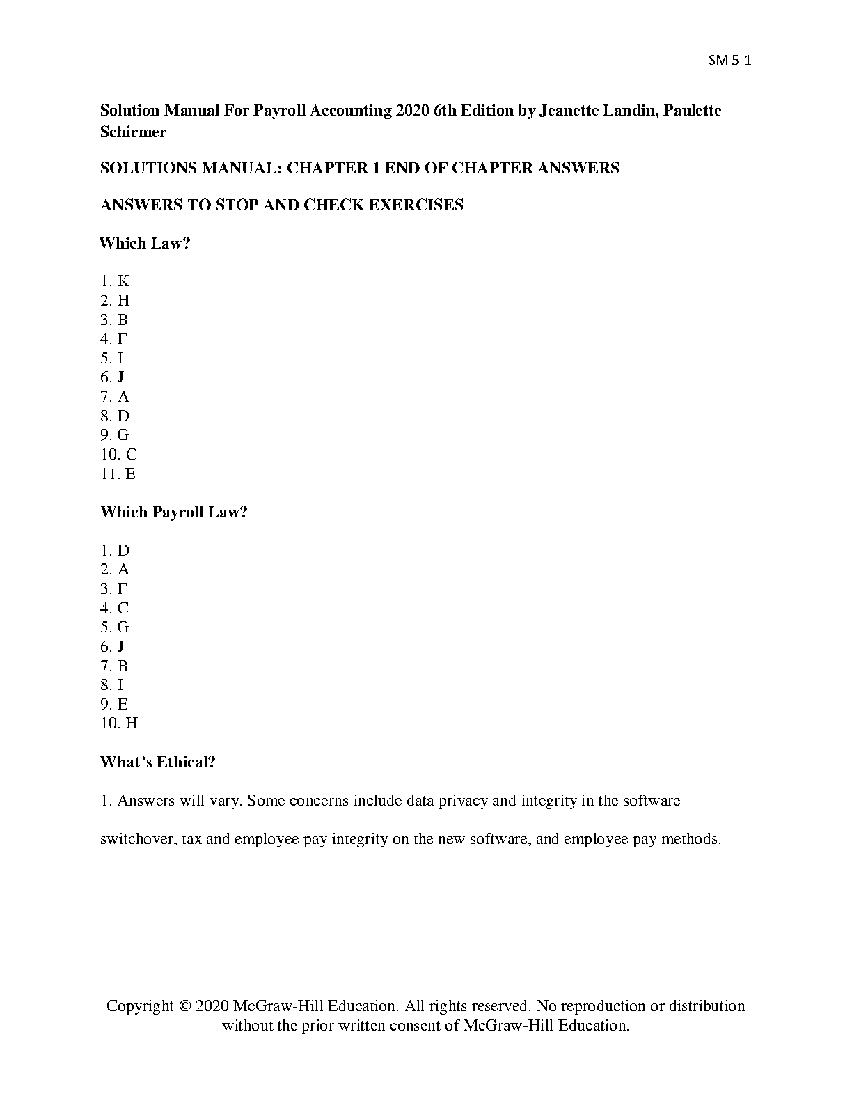 Solutions Manual for Payroll Accounting 2020, 6th Edition by Jeanette M. Landin & Paulette Schirmer