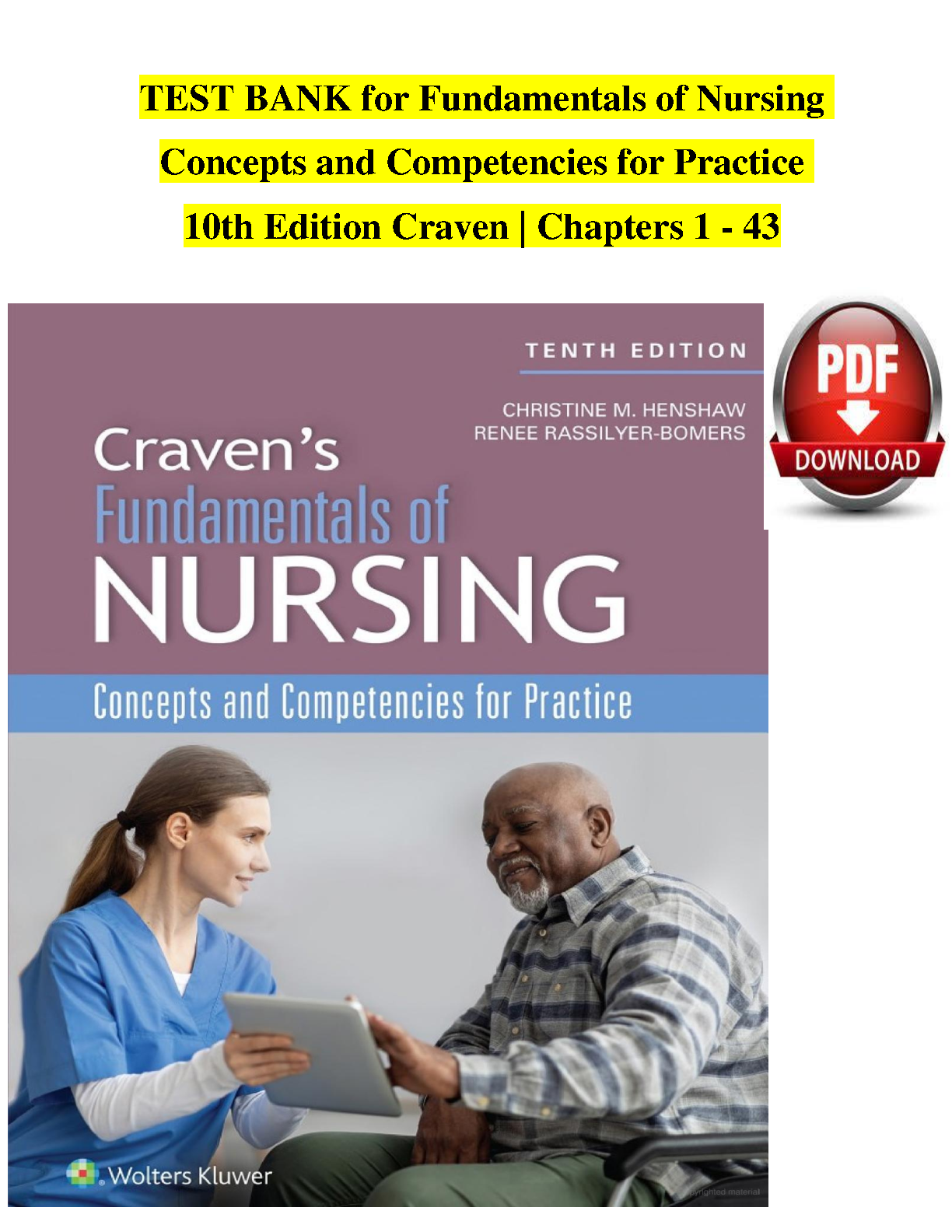 Ace your nursing exams with the official Test Bank for Craven's Fundamentals of Nursing: Concepts and Competencies for Practice, 10th Edition. Authored by Christine M. Henshaw and Renee Rassilyer-Bomers, this comprehensive resource covers all 43 chapters, providing a wealth of practice questions with detailed rationales. This is the ultimate study tool to help you master course material, build confidence, and pass your exams on the first attempt, securing your path to success in the nursing field. Get immediate access after download.