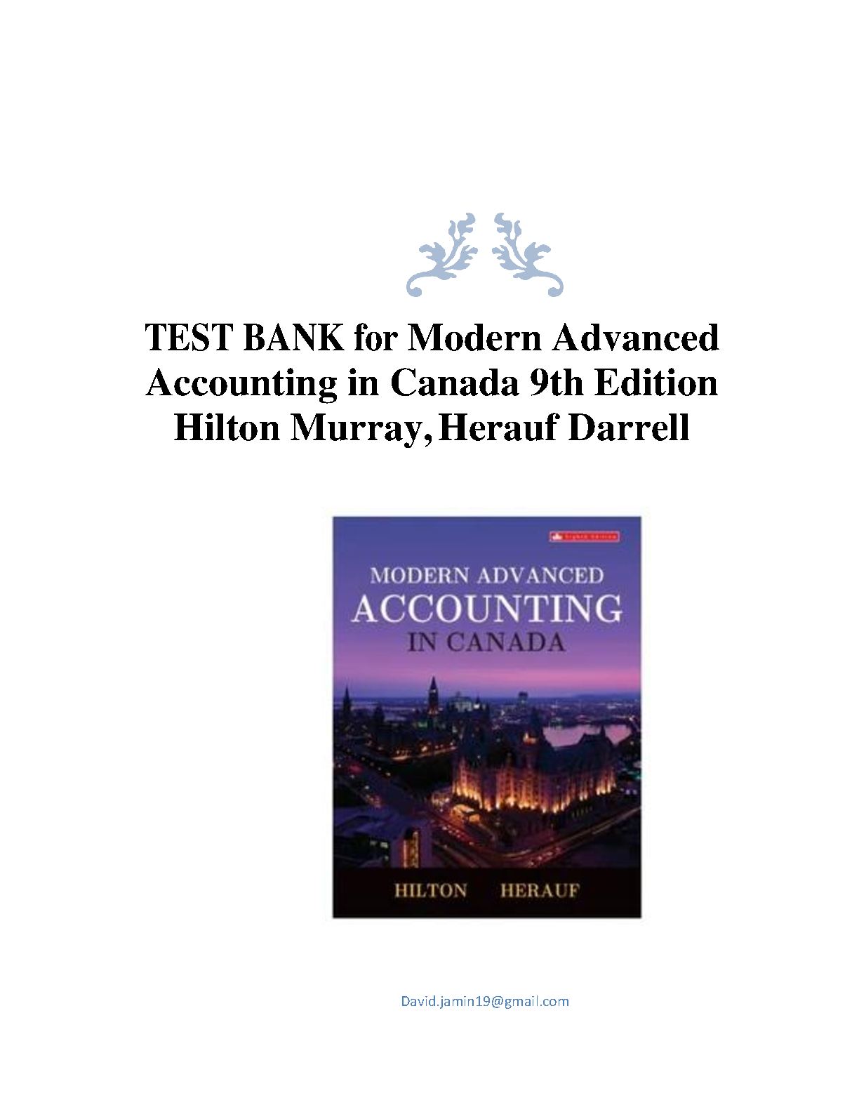 Test Bank for Modern Advanced Accounting in Canada, 9th Canadian Edition by Murray W. Hilton, Darrell J. Herauf
