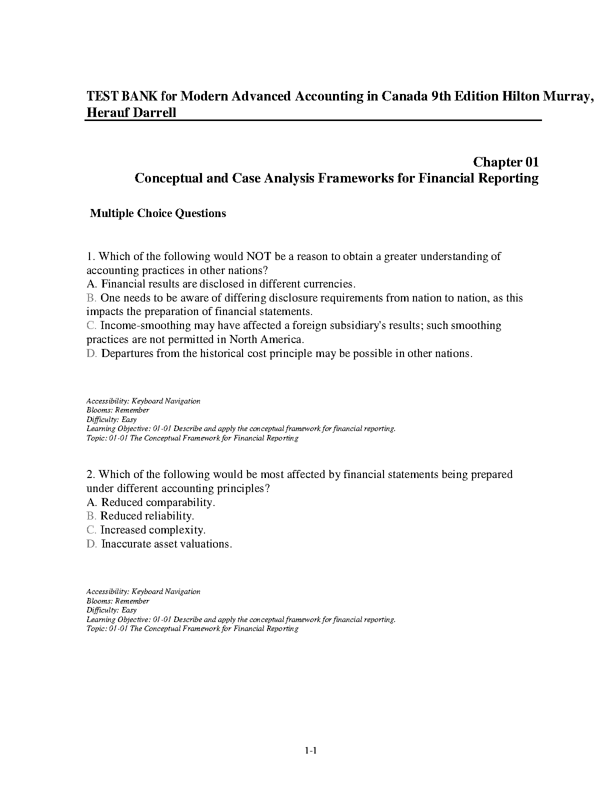 Unlock your full potential in advanced accounting with the official Test Bank for 'Modern Advanced Accounting in Canada, 9th Edition' by Murray W. Hilton and Darrell J. Herauf. This comprehensive resource is your key to mastering complex topics and acing your exams. Dive into a vast collection of practice questions, complete with detailed answers and explanations, designed to mirror the actual test format. Whether you're preparing for midterms or finals, this test bank provides the targeted practice you need to build confidence and achieve top grades. Instant download available.