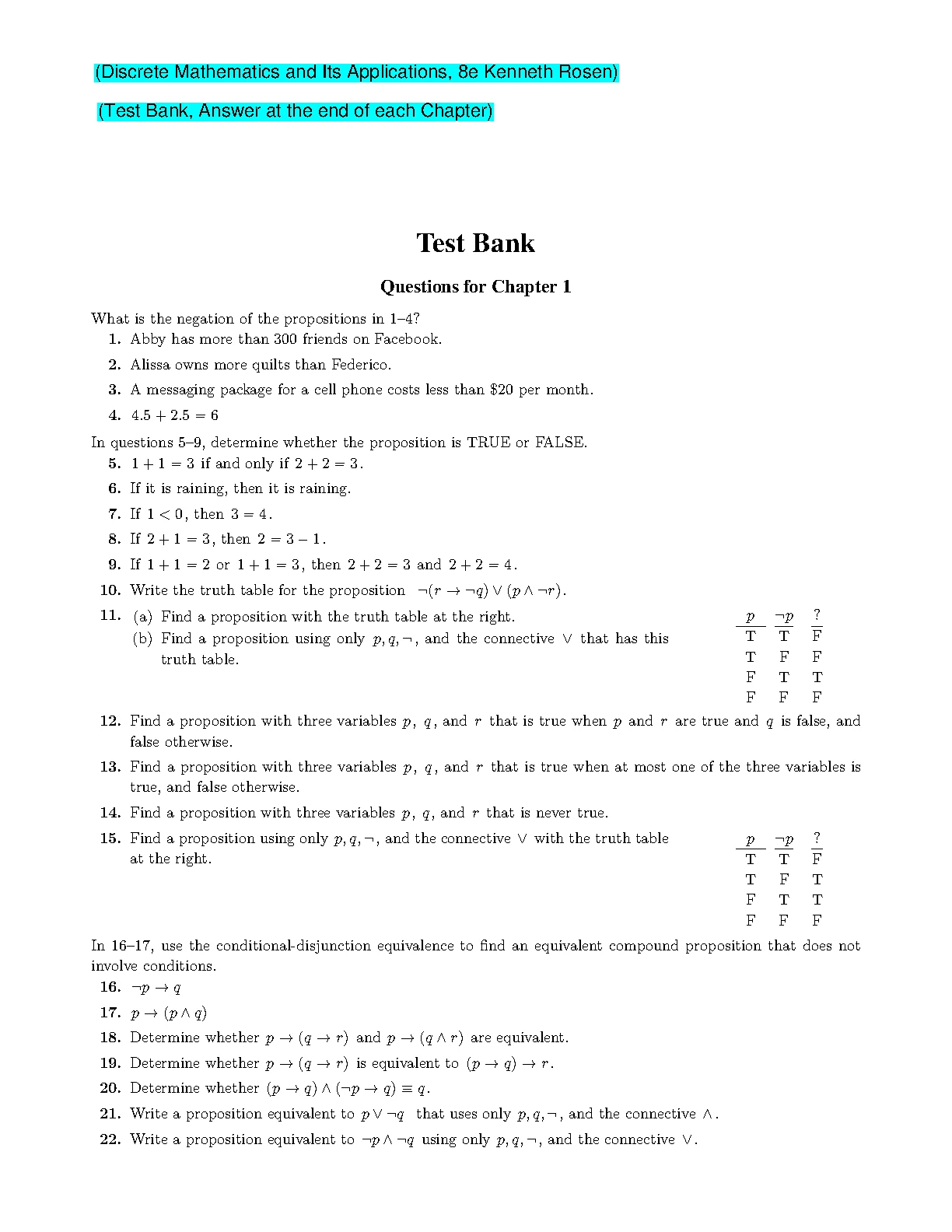 TEST BANK FOR Discrete Mathematics and Its Applications, 8TH EDITION BY Kenneth Rosen