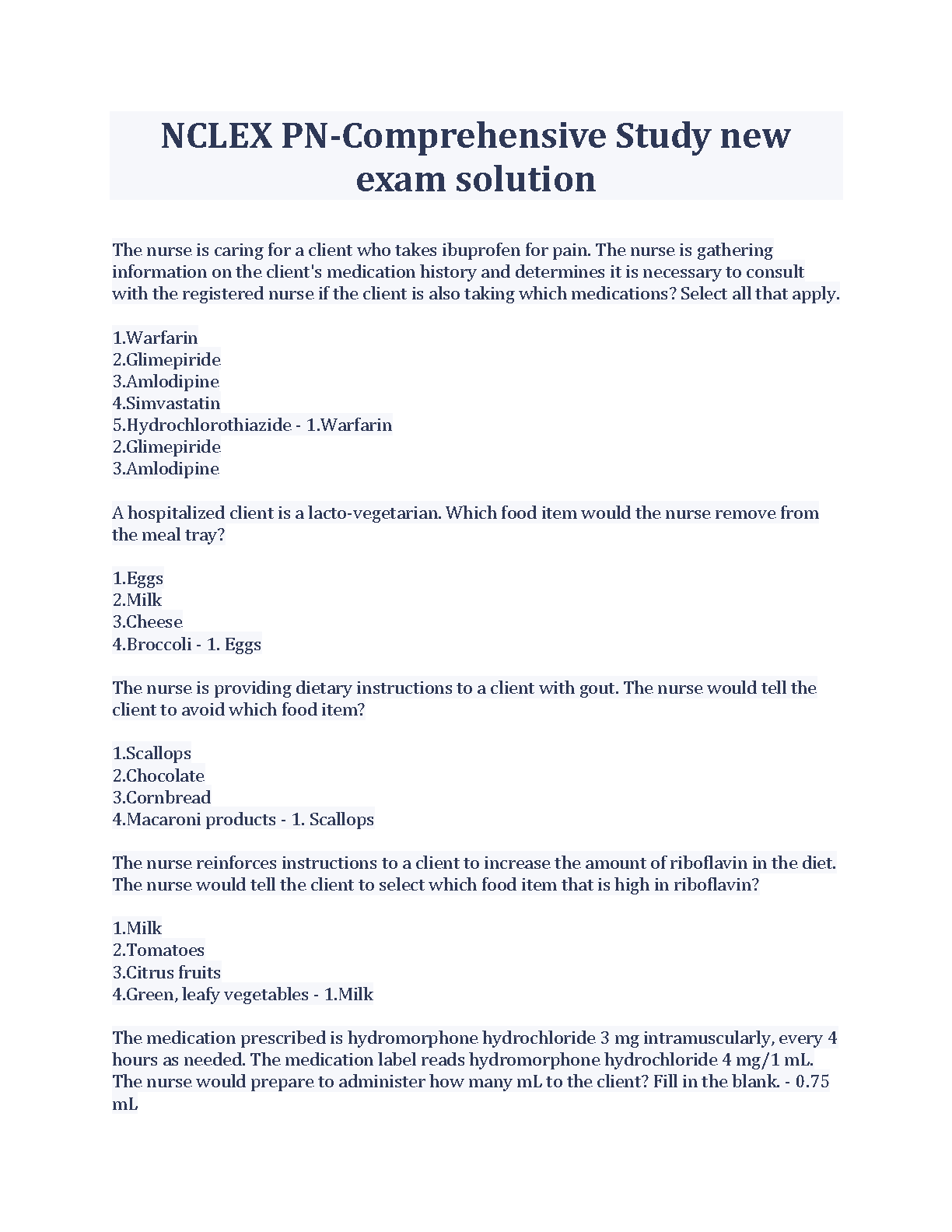 Prepare to ace the NCLEX-PN with our comprehensive and up-to-date Test Bank for the 2025/2026 academic year. This essential study resource provides a vast collection of practice questions complete with verified answers and detailed solutions. Covering critical nursing topics such as pharmacology, medication dosage calculations, patient dietary management (including gout and vegetarian diets), and complex care scenarios, this guide is meticulously designed to mirror the actual exam format. Stop just memorizing and start understanding the 'why' behind each answer. Equip yourself with the knowledge and confidence to pass the NCLEX-PN on your very first attempt and launch your nursing career without the stress of resits.
