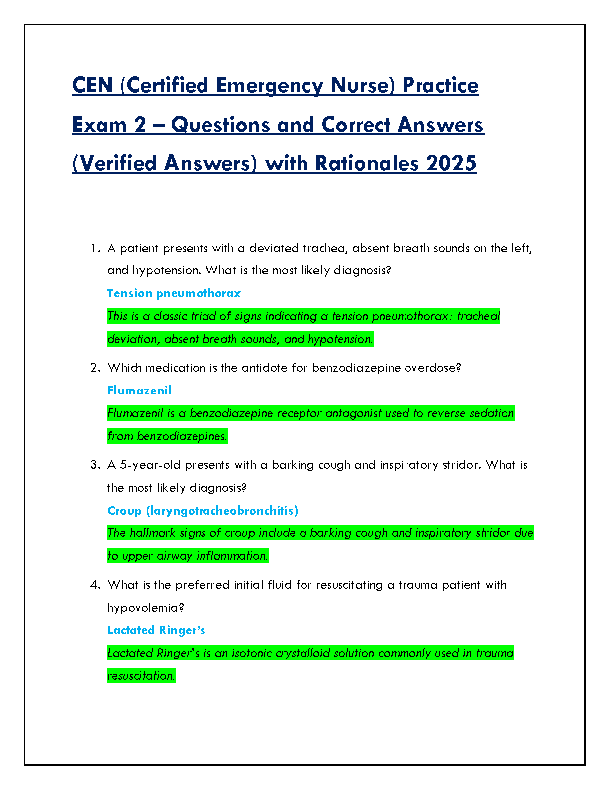 CEN Exam 2 Test Bank [2025/2026]: Ace Your Certified Emergency Nurse Exam with Verified Questions and Rationales