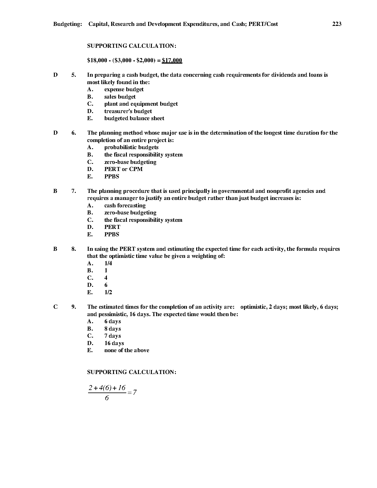 Cost/Managerial Accounting, 18th Edition (Gleim & Flesher) Test Bank - Chapter 16: Budgeting & Capital Expenditures
