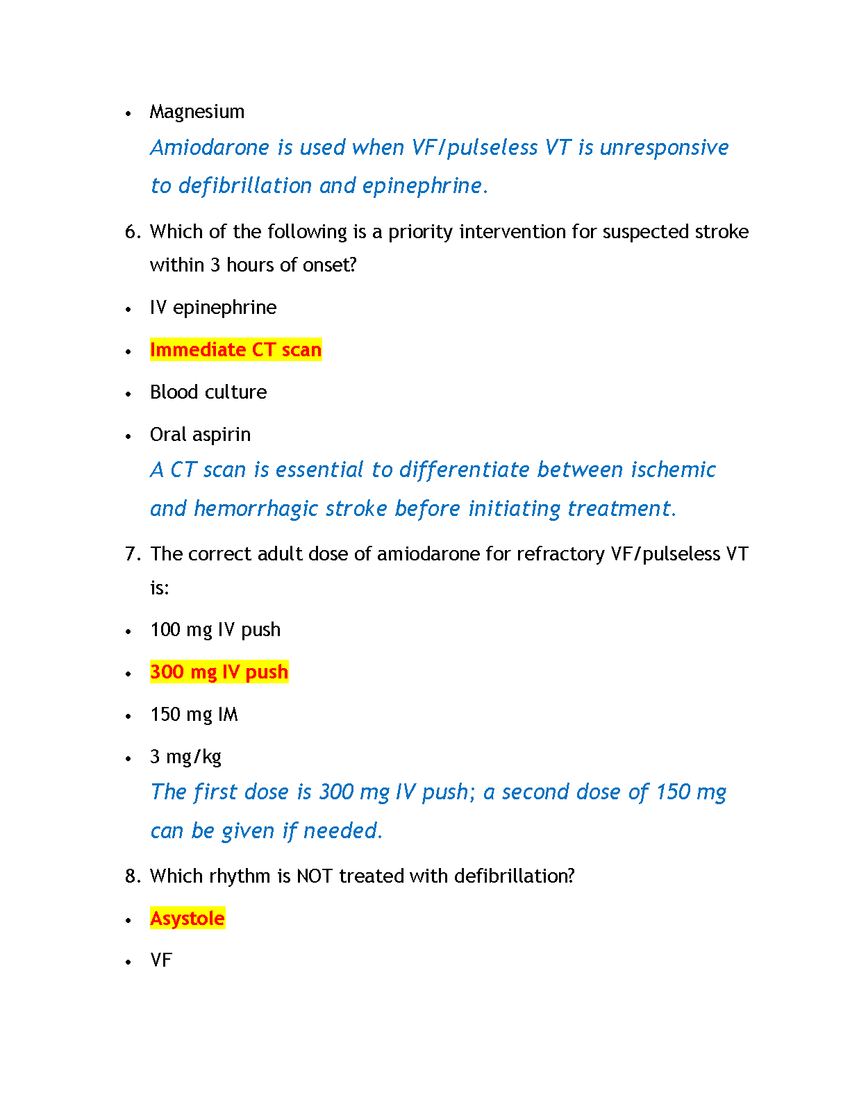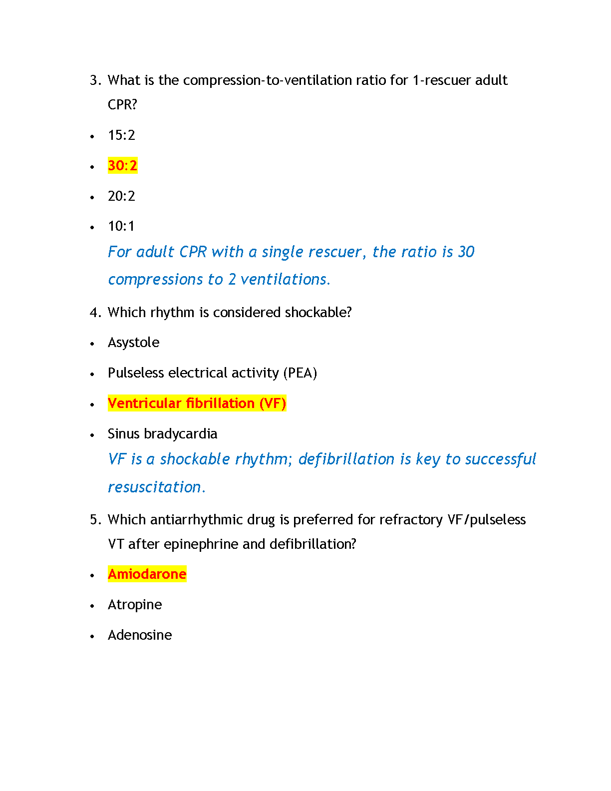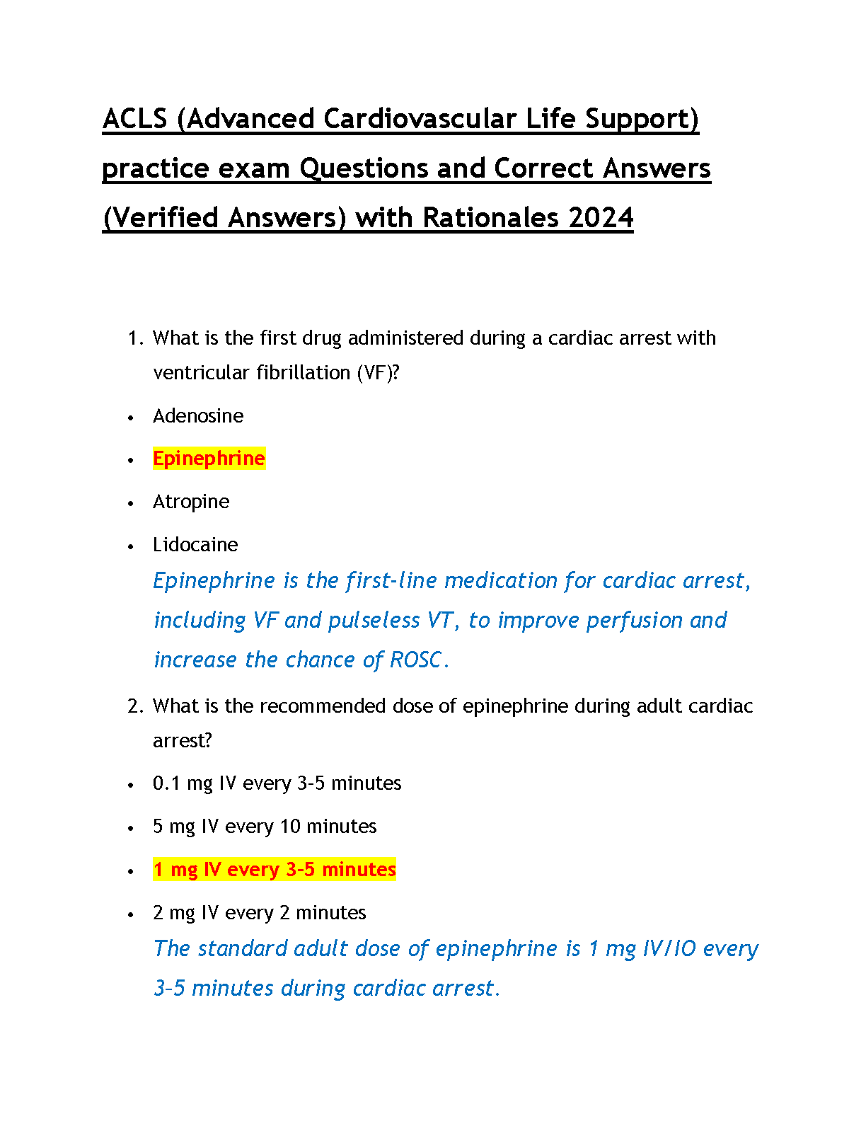 ACLS Test Bank 2024 | Advanced Cardiovascular Life Support Practice Exam Questions with Verified Answers & Rationales (Based on AHA Guidelines)