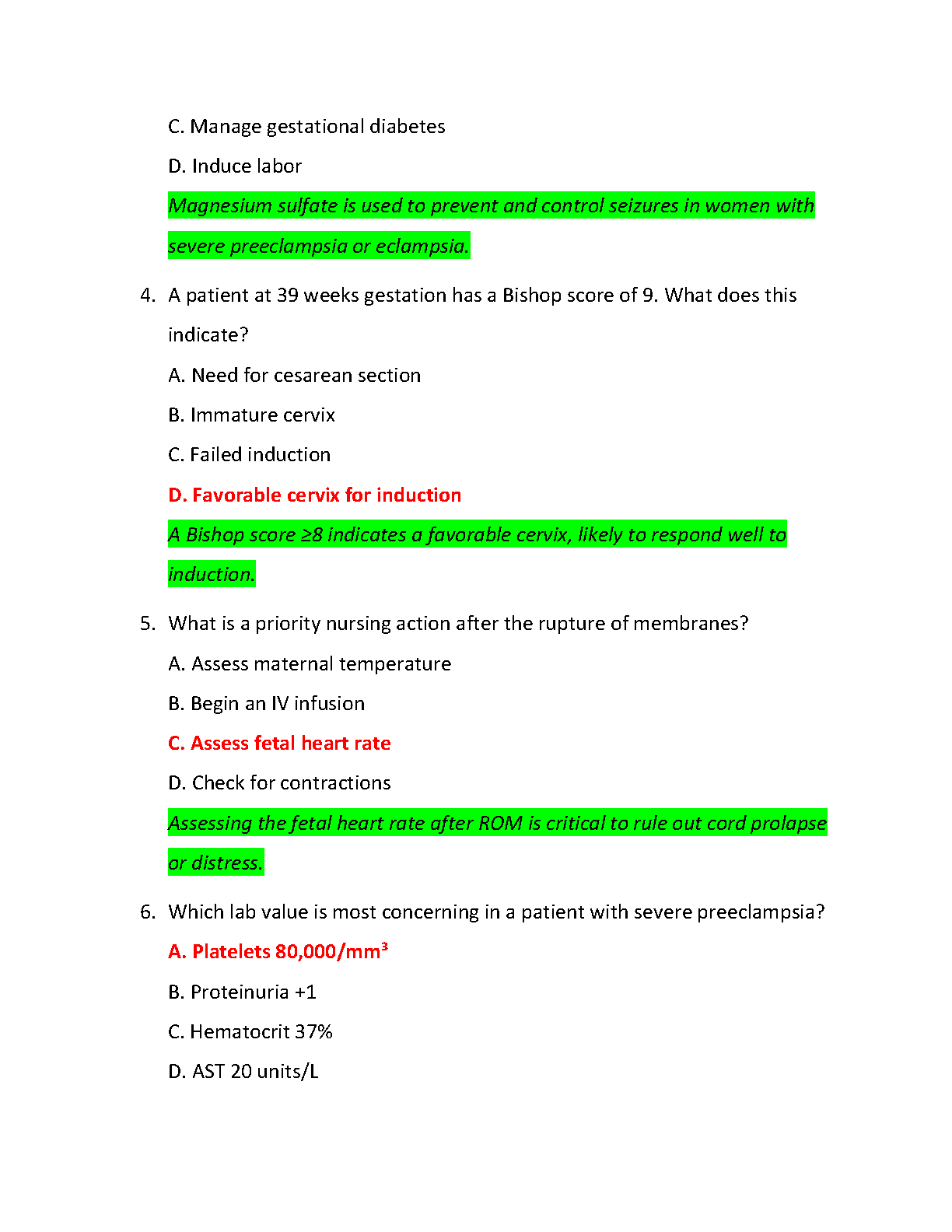 Prepare to excel in your Certified OB Nurse (RNC-OB) certification with our latest 2025/2026 practice exam! This comprehensive test bank is meticulously designed to help you pass on your first attempt. It features a wide range of practice questions covering essential obstetrics topics, each accompanied by verified correct answers and in-depth rationales. By understanding the 'why' behind each answer, you'll build the critical thinking skills and confidence needed to tackle the real exam. Don't leave your certification to chance—master the material and avoid resits with this essential study tool.