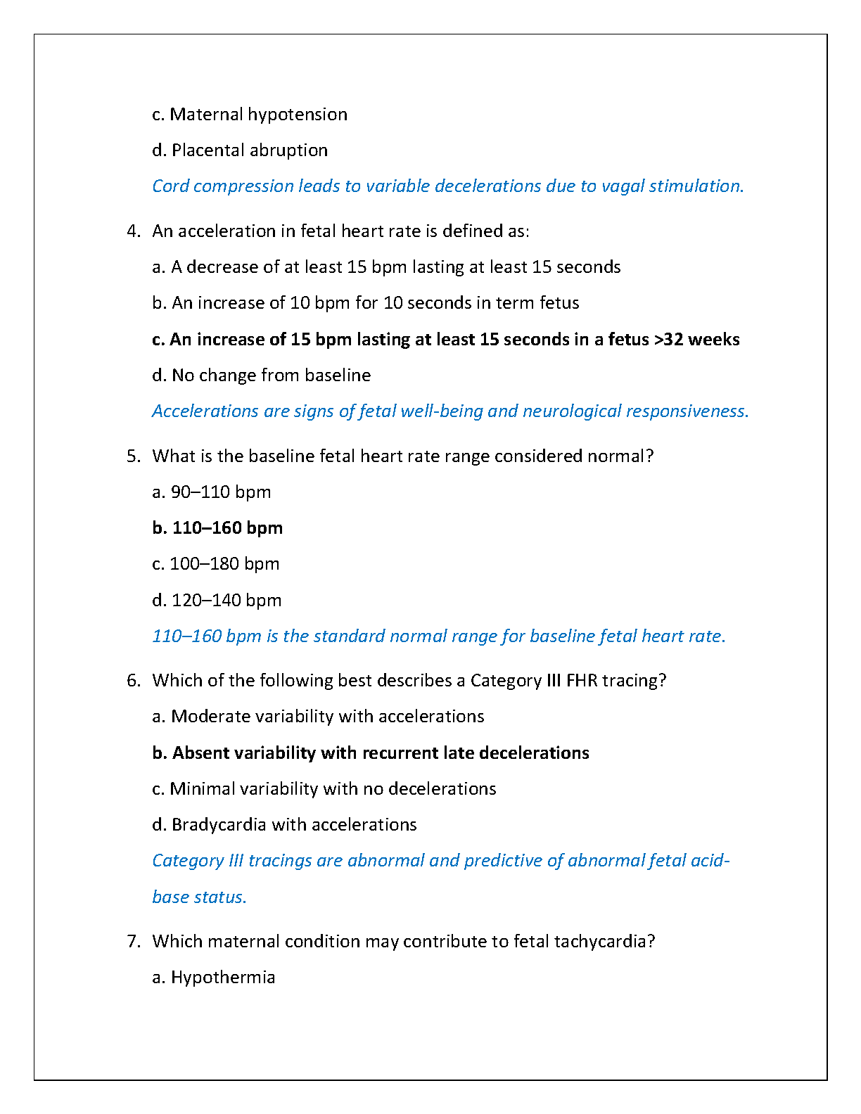 Prepare to ace your Certified in Fetal Monitoring (C-EFM) exam with our comprehensive 2025 test bank. This essential study guide is packed with practice questions that mirror the actual exam format. Each question comes with a verified correct answer and a detailed rationale, helping you understand the core concepts of fetal monitoring, not just memorize facts. Master topics like fetal heart rate (FHR) tracings, decelerations, and common causes of fetal distress. Our C-EFM practice exam is your key to building confidence and passing your certification on the very first try.