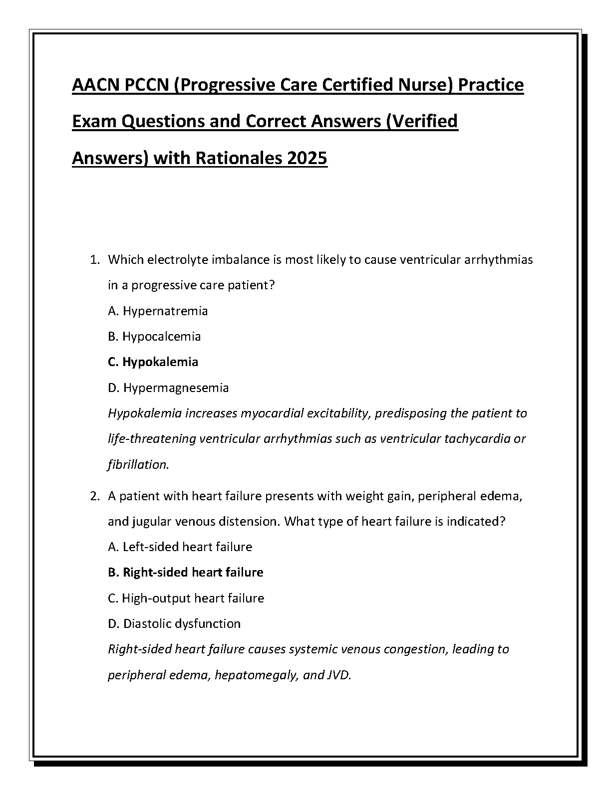 PCCN Test Bank 2025/2026: Master the AACN Progressive Care Certified Nurse Exam with Verified Questions, Answers & Rationales to Pass on Your First Attempt