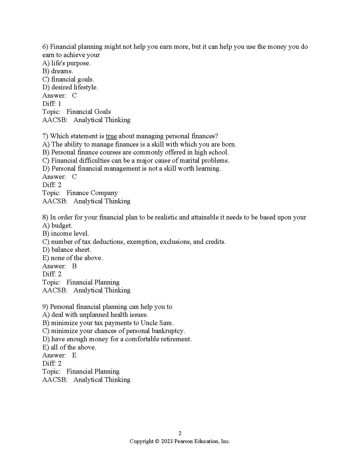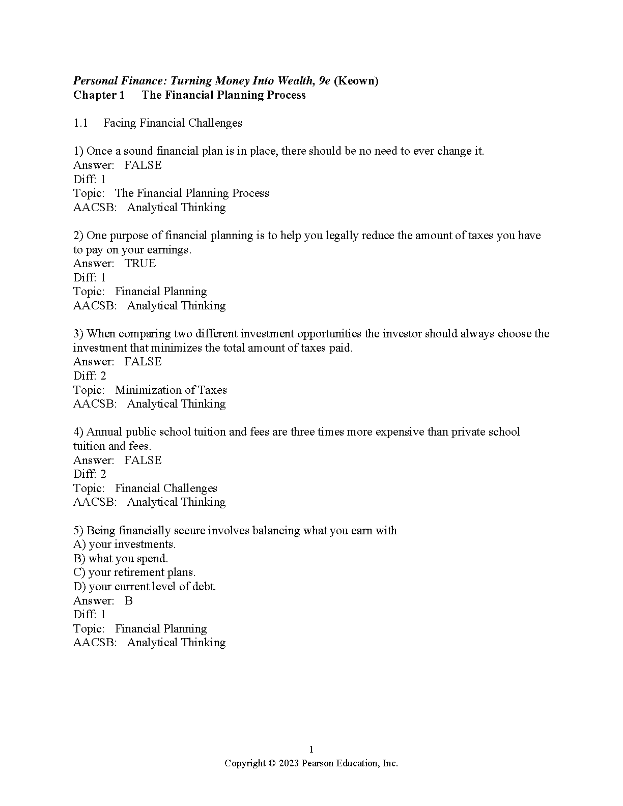 Test Bank for Personal Finance: Turning Money into Wealth, 9th Edition by Arthur J. Keown