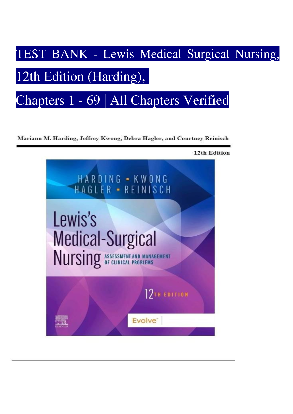 Test Bank for Lewis's Medical-Surgical Nursing, 12th Edition by Mariann M. Harding, Jeffrey Kwong, Debra Hagler, and Courtney Reinisch - All Chapters 1-69