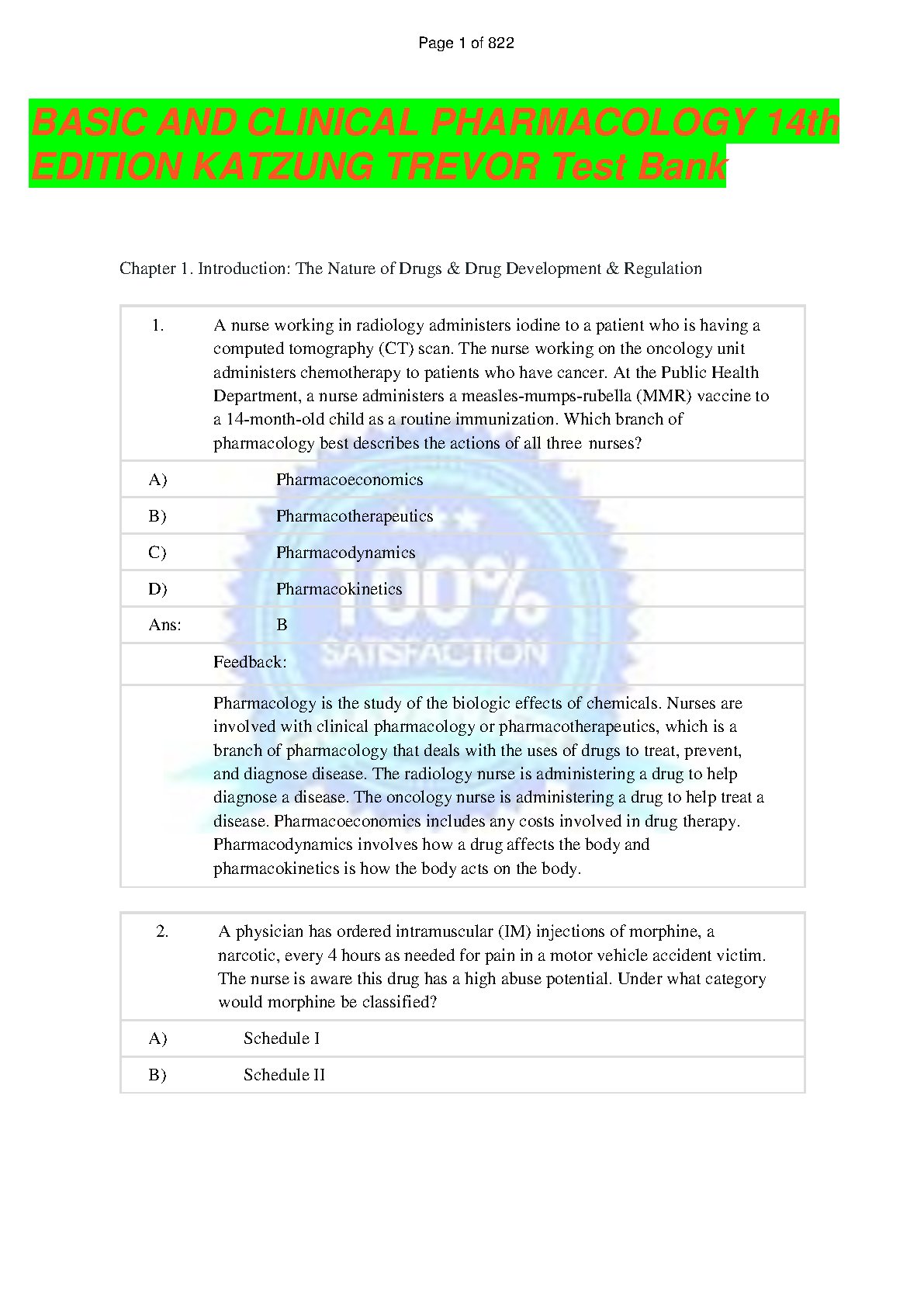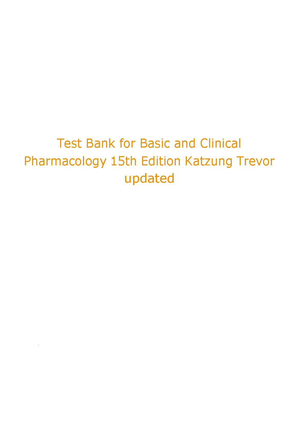 Updated Test Bank for Basic and Clinical Pharmacology, 15th Edition by Bertram G. Katzung & Anthony J. Trevor