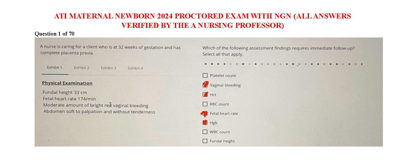 ATI Maternal Newborn 2024 Proctored Exam: NGN Edition with Professor-Verified Questions and Answers