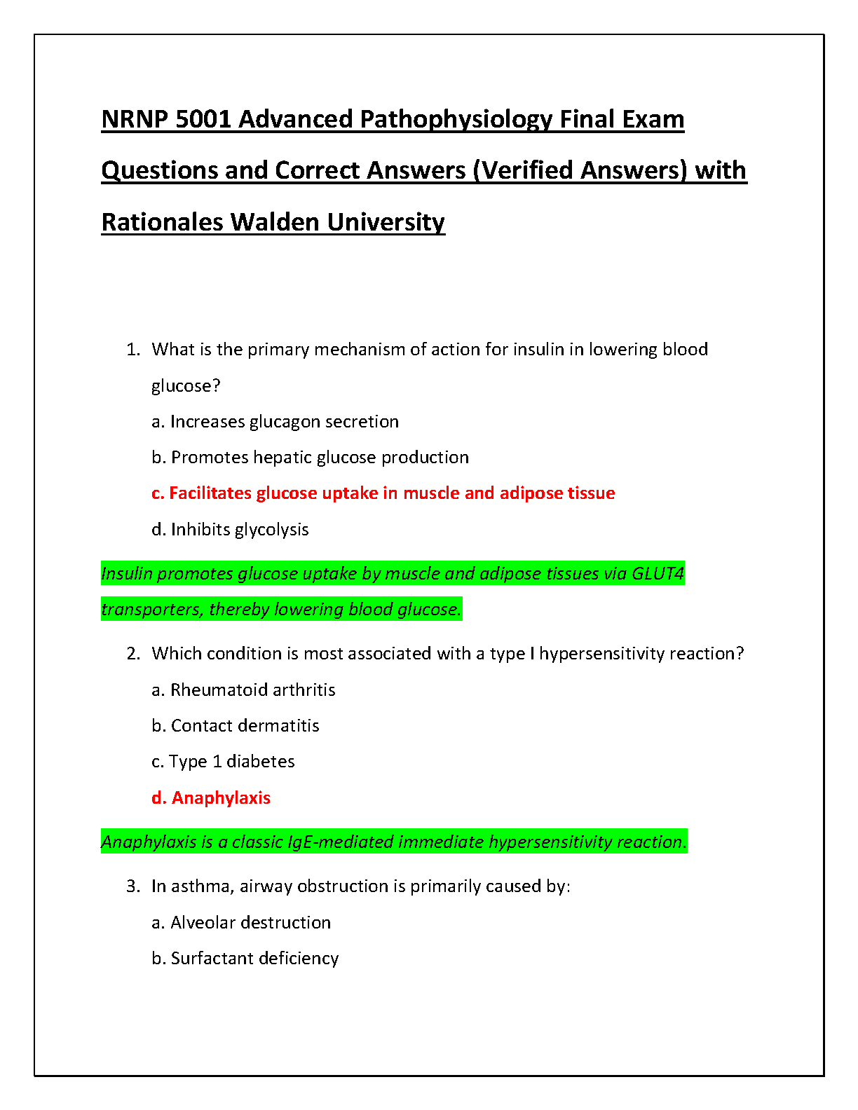 NRNP 5001 Advanced Pathophysiology Final Exam Test Bank (2025/2026) | Walden University | Questions, Verified Answers & Rationales